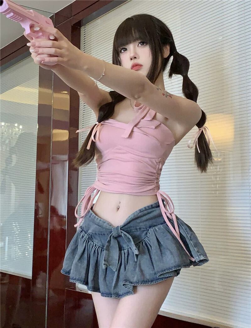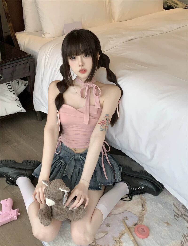恋人ガールスタイルスーツの女性の夏 2023 巾着チューブトップリボンプリーツスカート 2 点セット 大人ガーリー スウィート キュート カジュアル サマー 夏物 0921954644359018