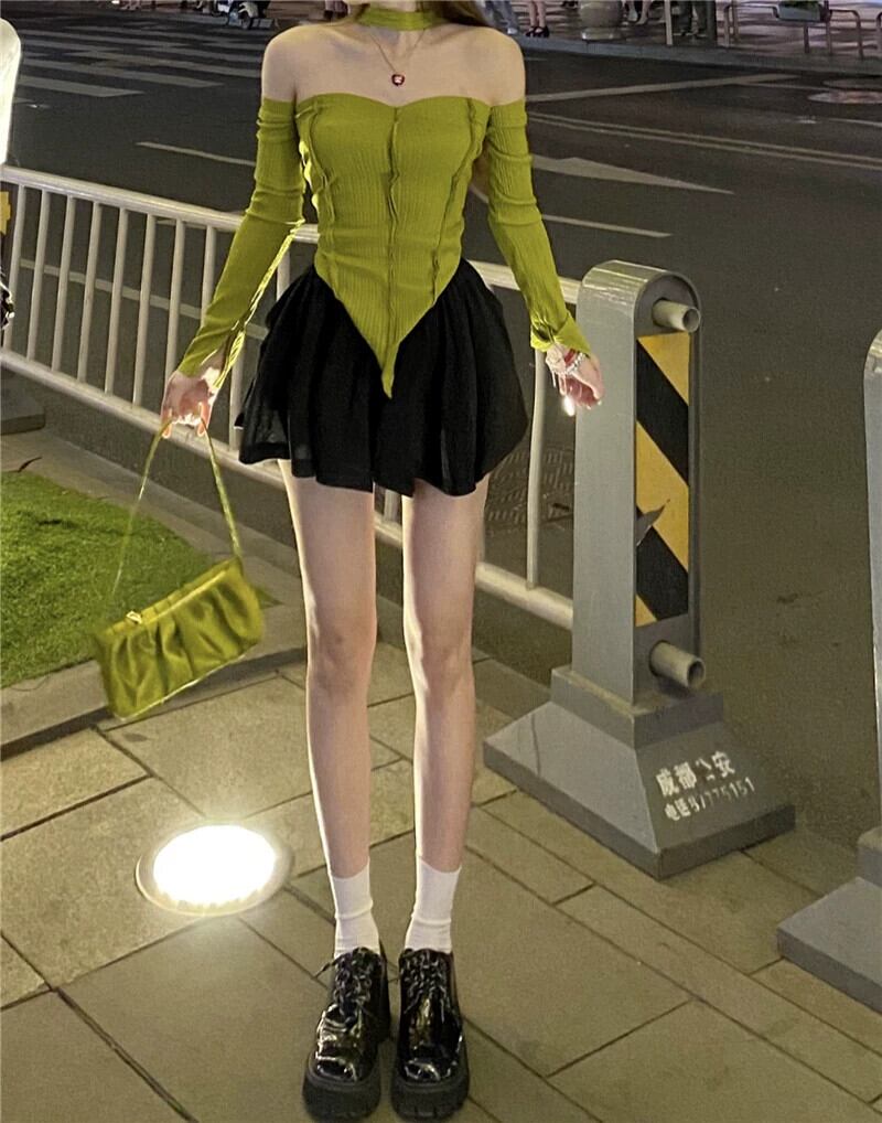 甘辛ツーピースセット女性の夏 2023 新しい不規則なワンラインカラーホルタートップショートスカートパンツスーツ 大人ガーリー スウィート キュート カジュアル サマー 夏物 0921992247437311