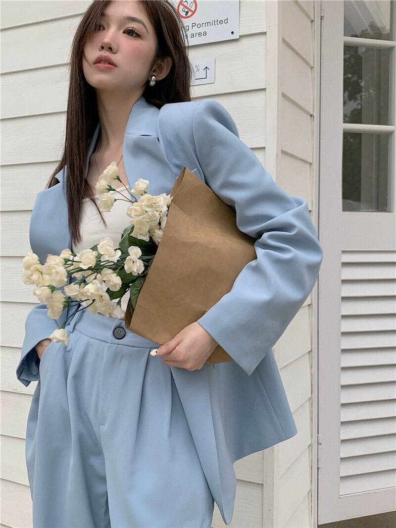 -endファッションスーツ女性2023年初秋新作ルーズ長袖スーツジャケット痩身ワイドレッグパンツ2点セット ロング オータム 秋物 092197136508131