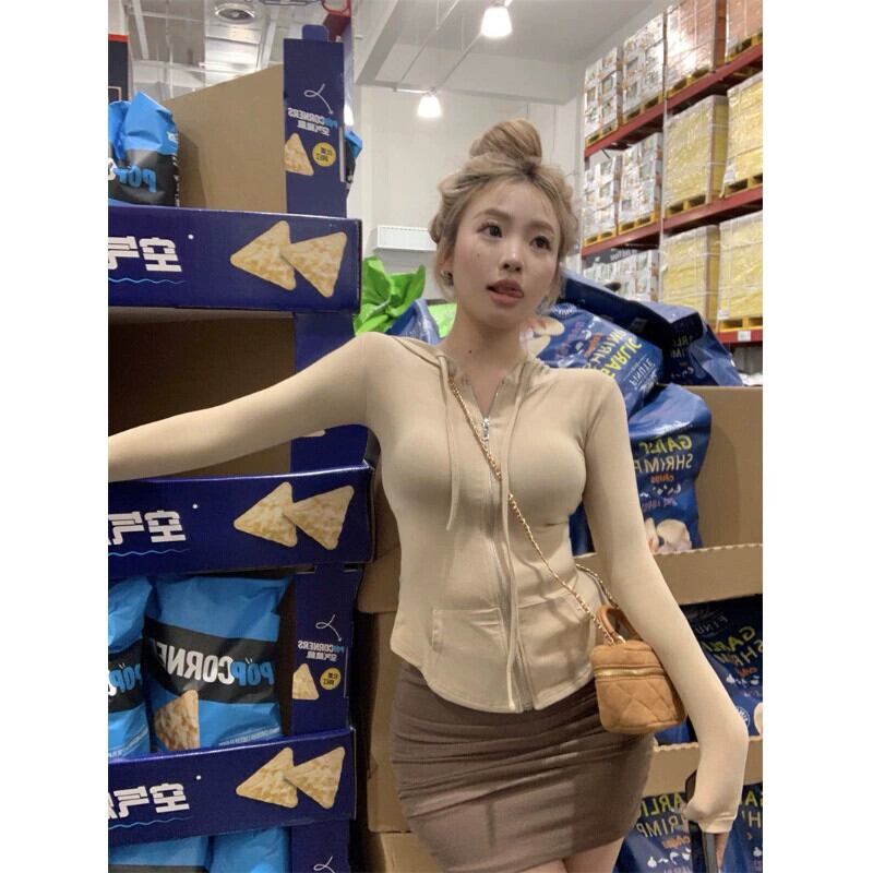 純粋な欲望ホットガール無地長袖日焼け止めジャケット女性の夏 2023 フード付きスリムスリムカーディガントップ ロング サマー 夏物 ソリッドカラー 0921957312560385