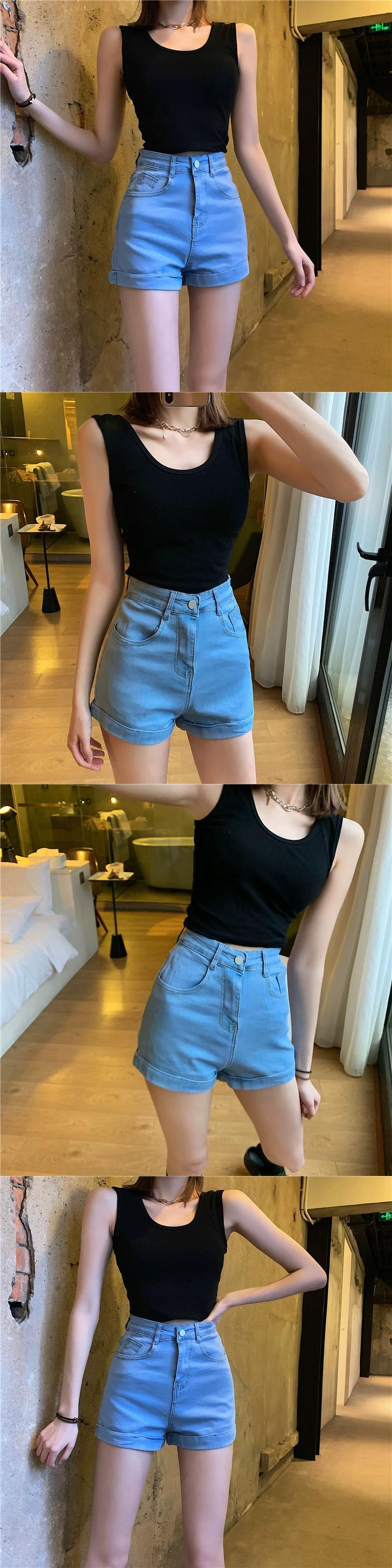 スタイルレトロ多用途ロールヘムデザインデニムショートパンツ女性の夏の 2023 新しいハイウエストスリム痩身パンツ サマー 夏物 ショーツ ブルマー 0921928231739057