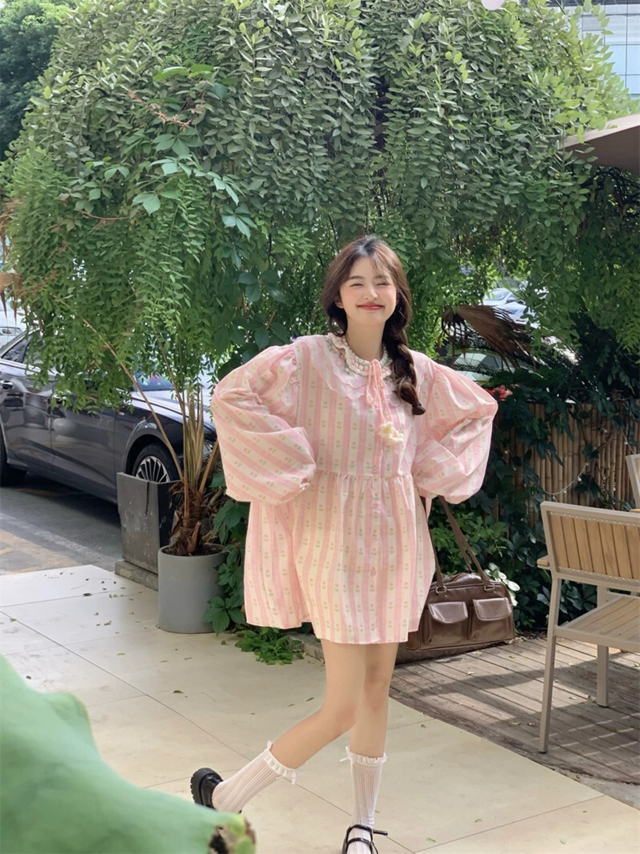 色:ピンクの花柄ベビードールスカート