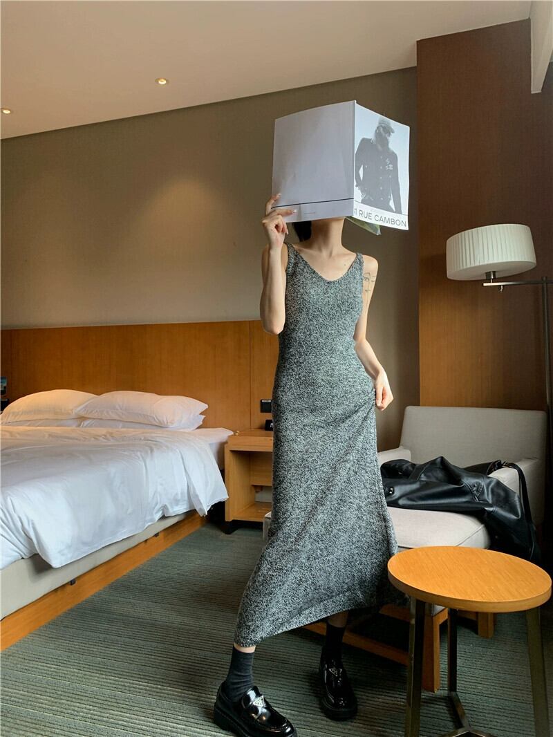 多彩なデザイングレーサスペンダードレス女性の夏の 2023 新しいスタイルウエスト痩身ニットロングスカート サマー 夏物 0921965652256891