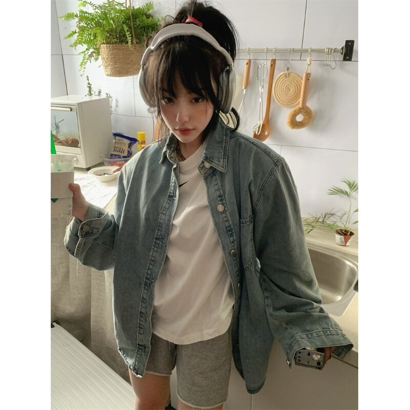 アメリカンレトロ刺繍レタリング長袖デニムジャケット女性秋ルーズBFスタイルミッドレングス多目的ジャケットトップ ロング レッド オータム 秋物 0921993907645029