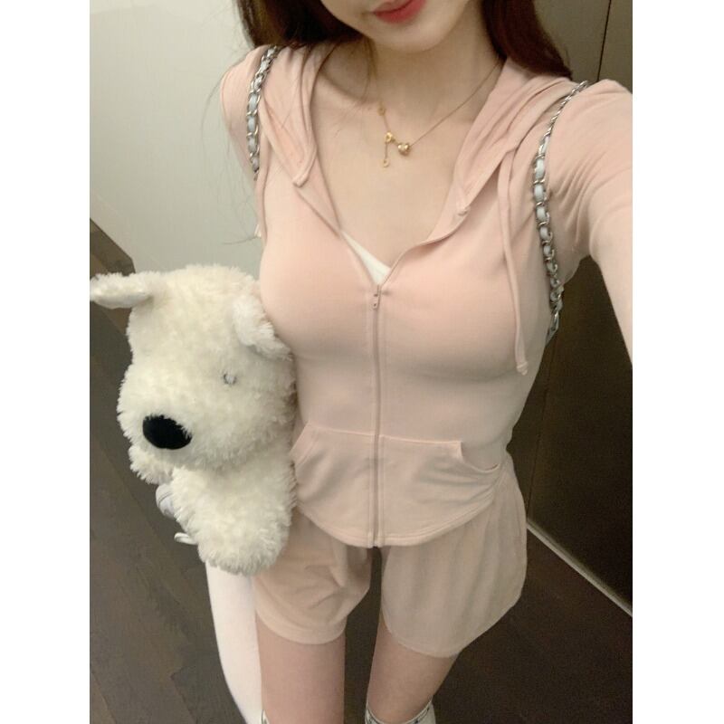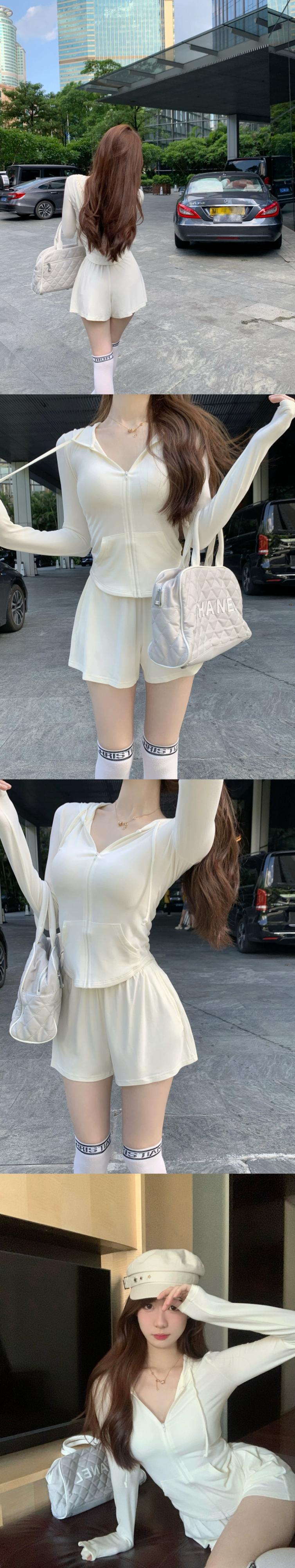 小さなカジュアルスポーツスーツフード付き長袖日焼け止めジャケットレディース夏ワイドレッグショーツ 2 点セット ロング サマー 夏物 ブルマー 0921946678370041