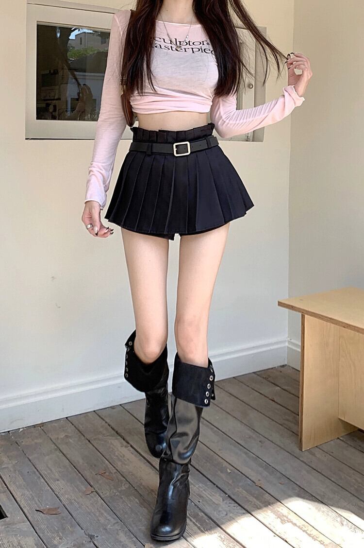 年齢を軽減する多目的ソリッドカラースカートレディース 2023 夏の新しいハイウエスト痩身 A ラインプリーツショートキュロット サマー 夏物 Aライン 0921924868717206