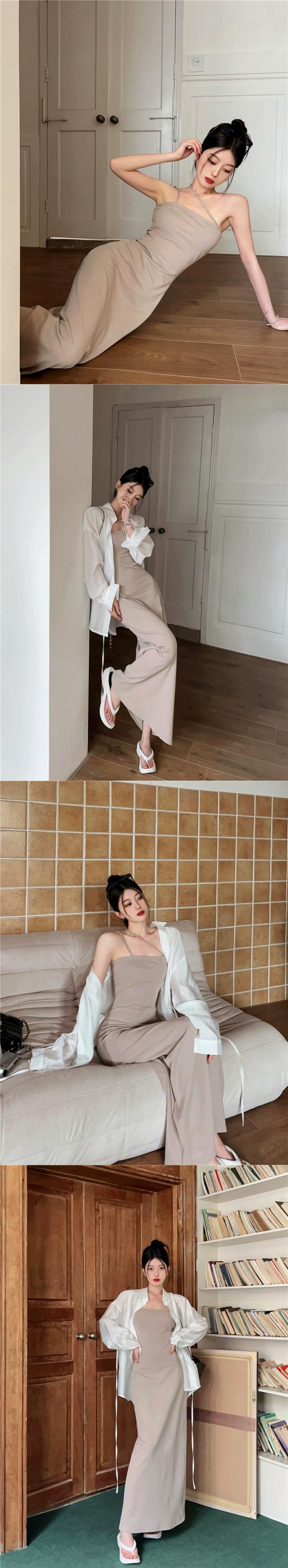 ファッションスーツ女性の秋 2023 新しい日焼け防止服長袖シャツ中空サスペンダーロングスカート 2 点セット オータム 秋物 0921916050151682