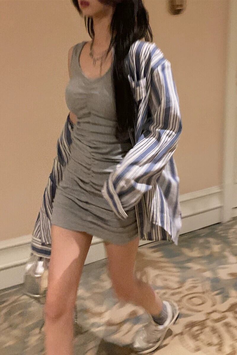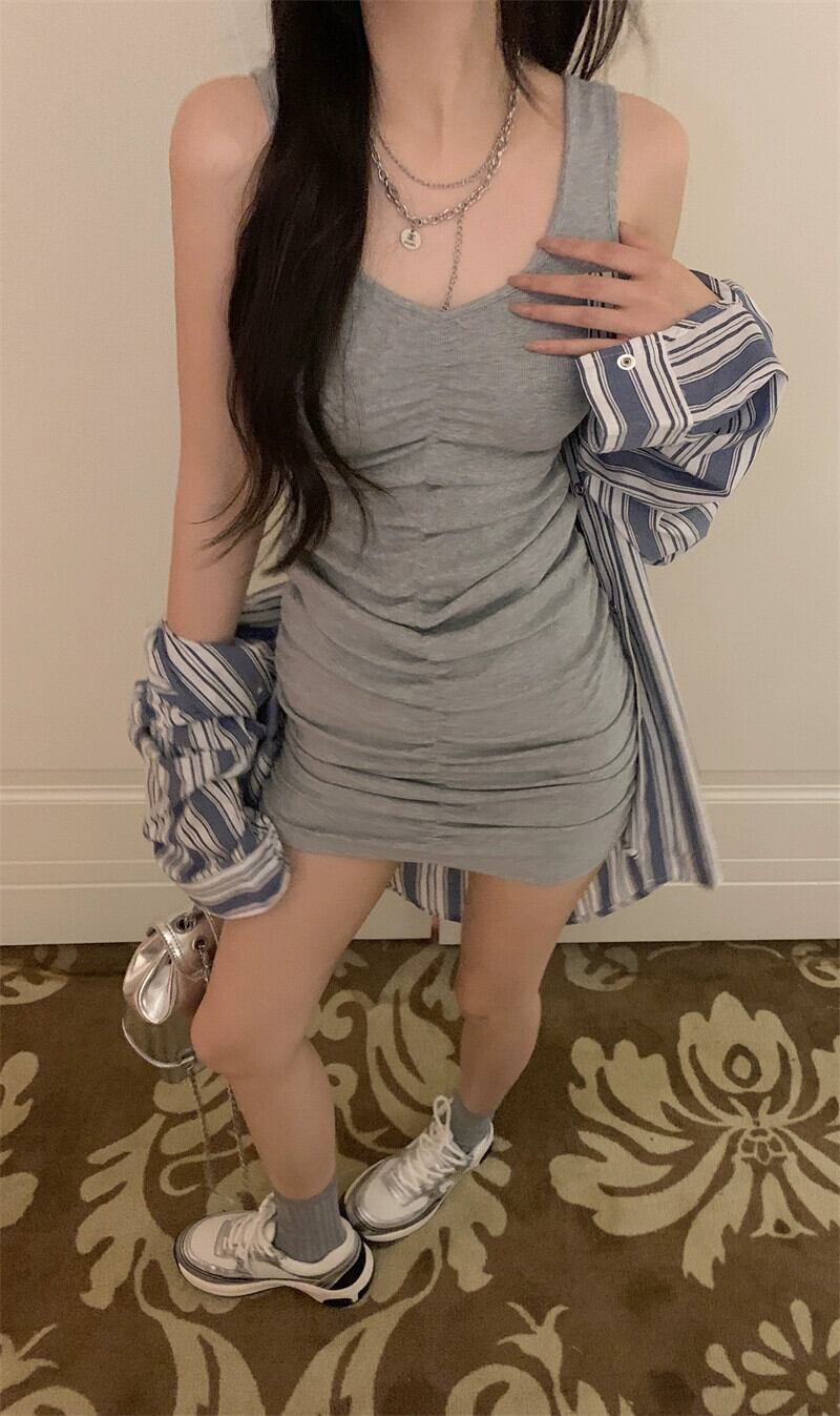塩スタイルカジュアル V ネックベストドレス女性の夏 2023 新デザインウエスト痩身ヒップスカート サマー 夏物 Vネック 0921980752025862