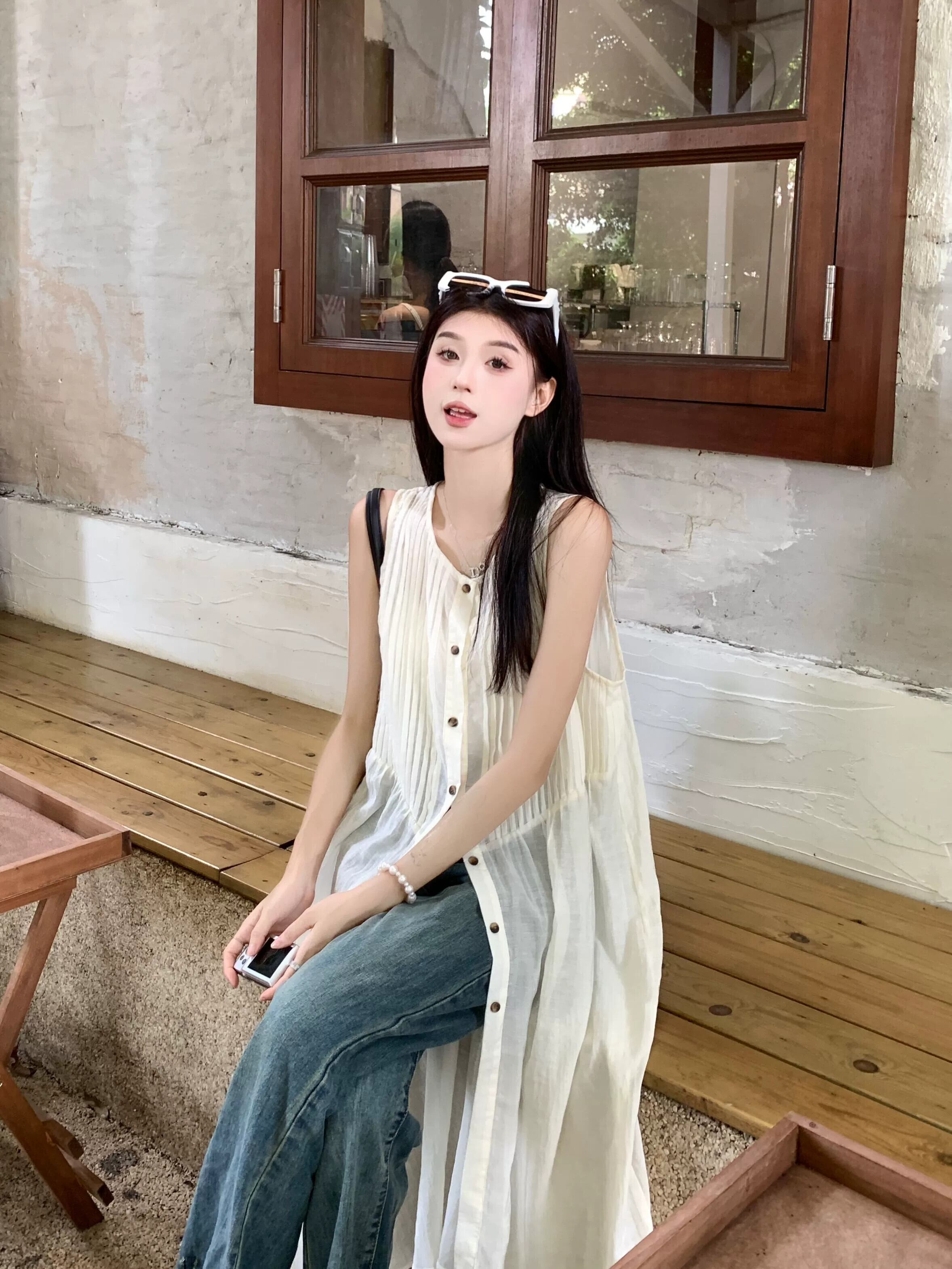 デザインニッチプリーツノースリーブドレスの女性の夏 2023 新しいシックなファッションミッドレングススカート サマー 夏物 0921958417270714