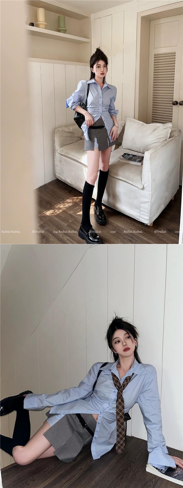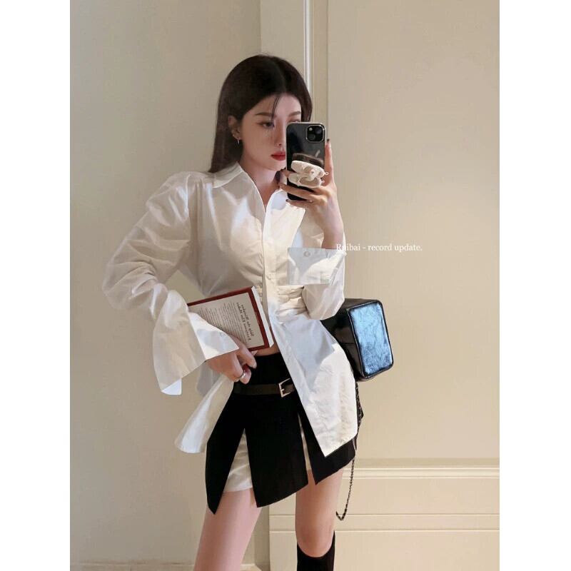 スタイルファッションスーツ女性秋 2023 新しいプリーツウエスト痩身シャツ多用途スカート 2 点セット オータム 秋物 0921985867662707