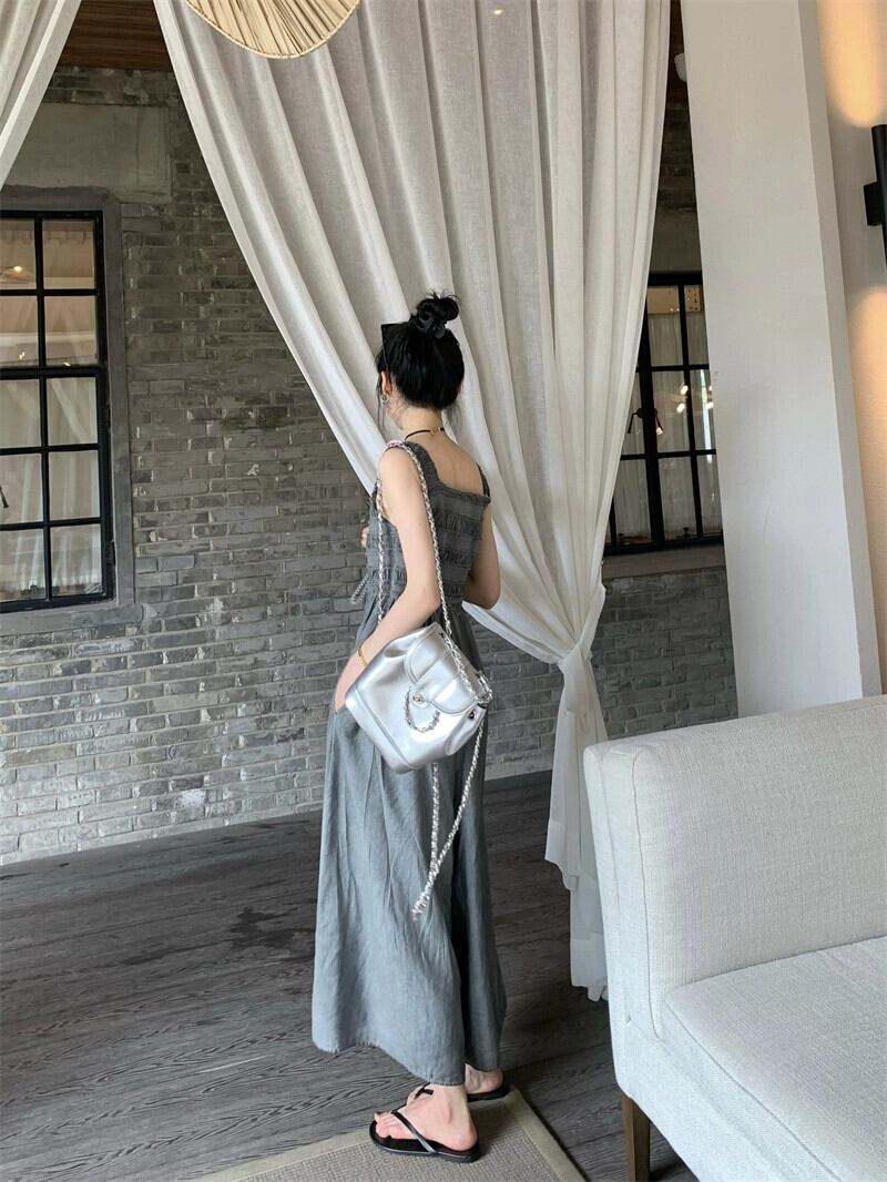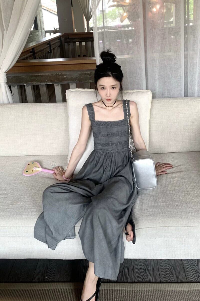有能ノースリーブスクエアネックベストジャンプスーツ女性の夏 2023 ホットガールウエストルーズワイドレッグストレートパンツ サマー 夏物 ワイドパンツ スクウェア 0921983755059951