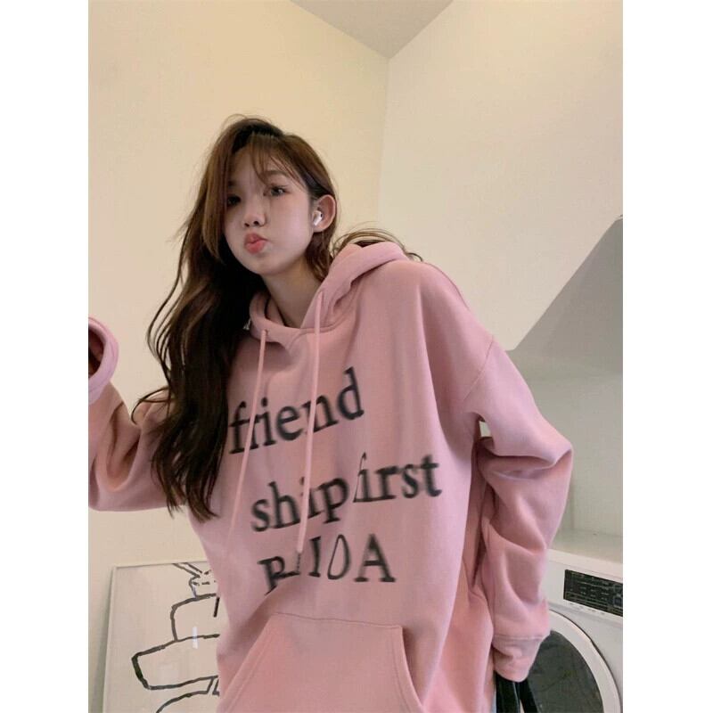 スタイルルーズで怠惰なスタイルのフード付き長袖スウェットシャツ女性秋多目的ミッドレングスレタープリントプルオーバートップ ロング オータム 秋物 092193651057028