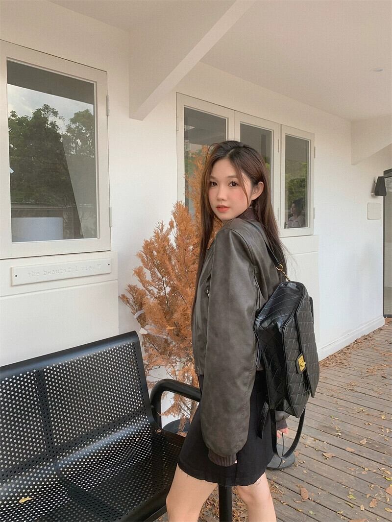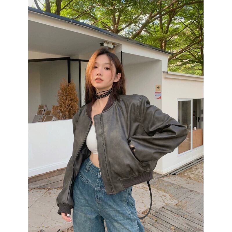 レトロなダメージ加工スタンドカラージャケットレザージャケット女性秋 2023 新スタイルショートルーズスリムカーディガントップトレンディな オータム 秋物 0921943914210161