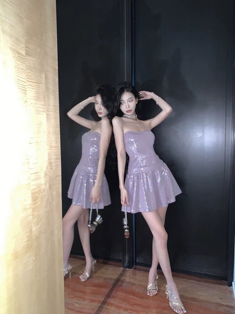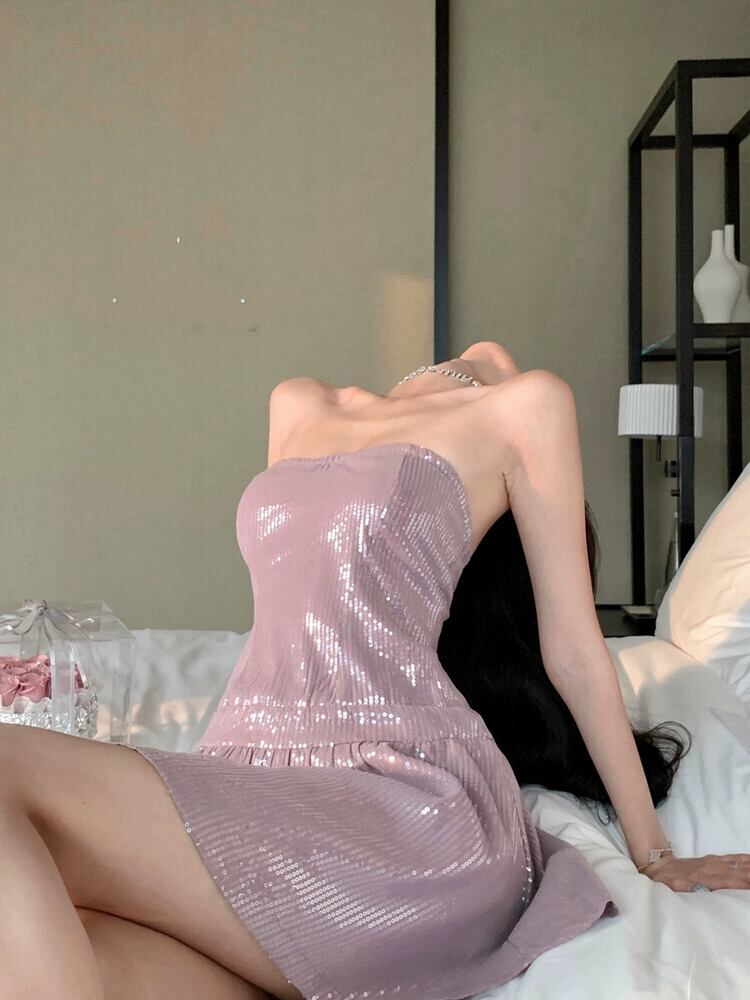紫色の雰囲気チューブトップドレス女性の夏 2023 新しい背中の開いたウエスト痩身 A ラインショートスカート サマー 夏物 Aライン パープル 0921950103315507