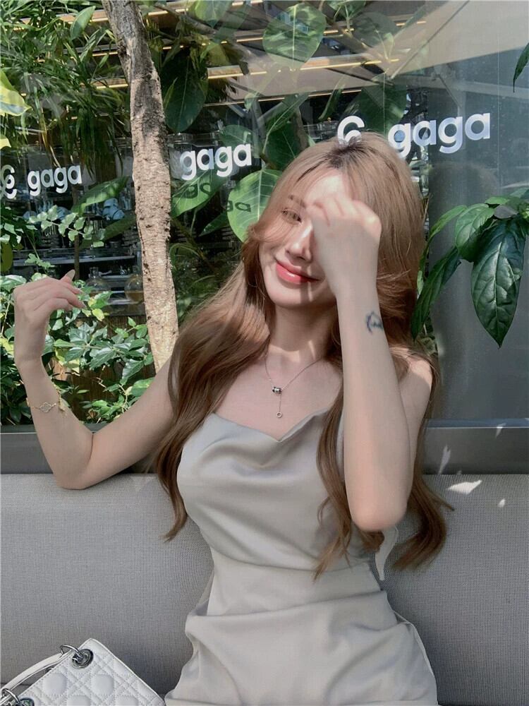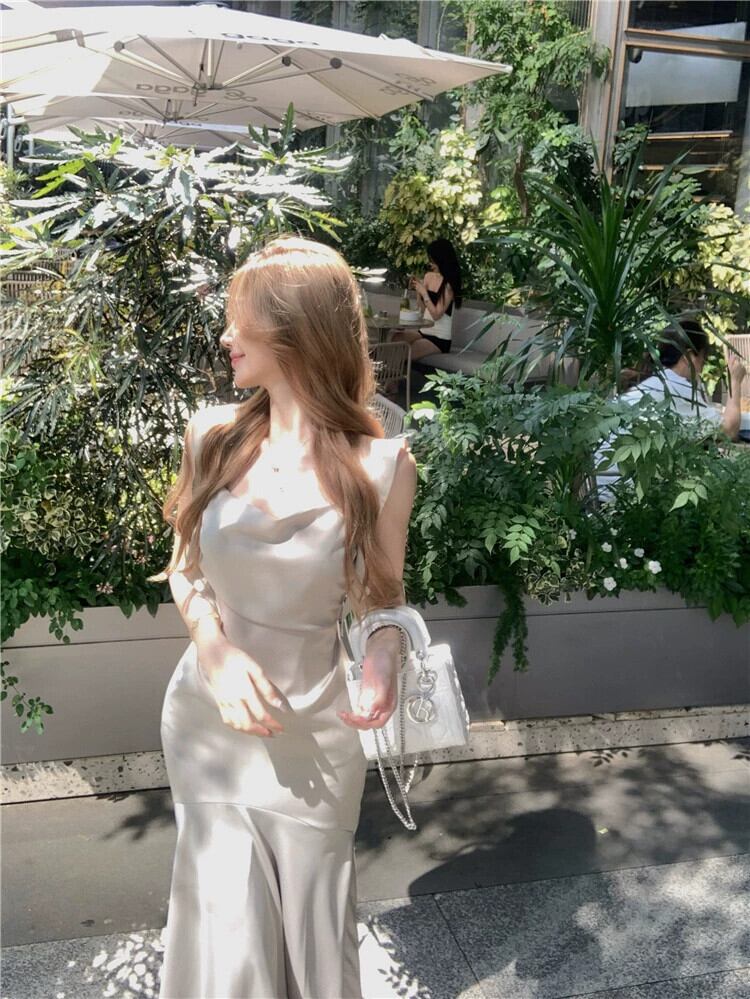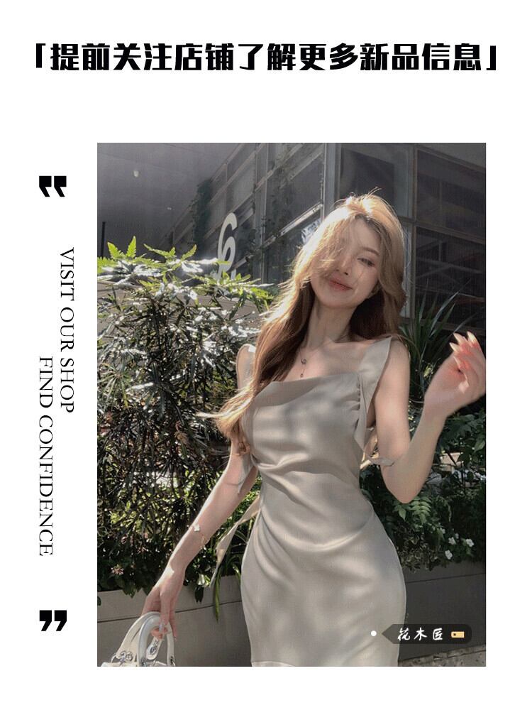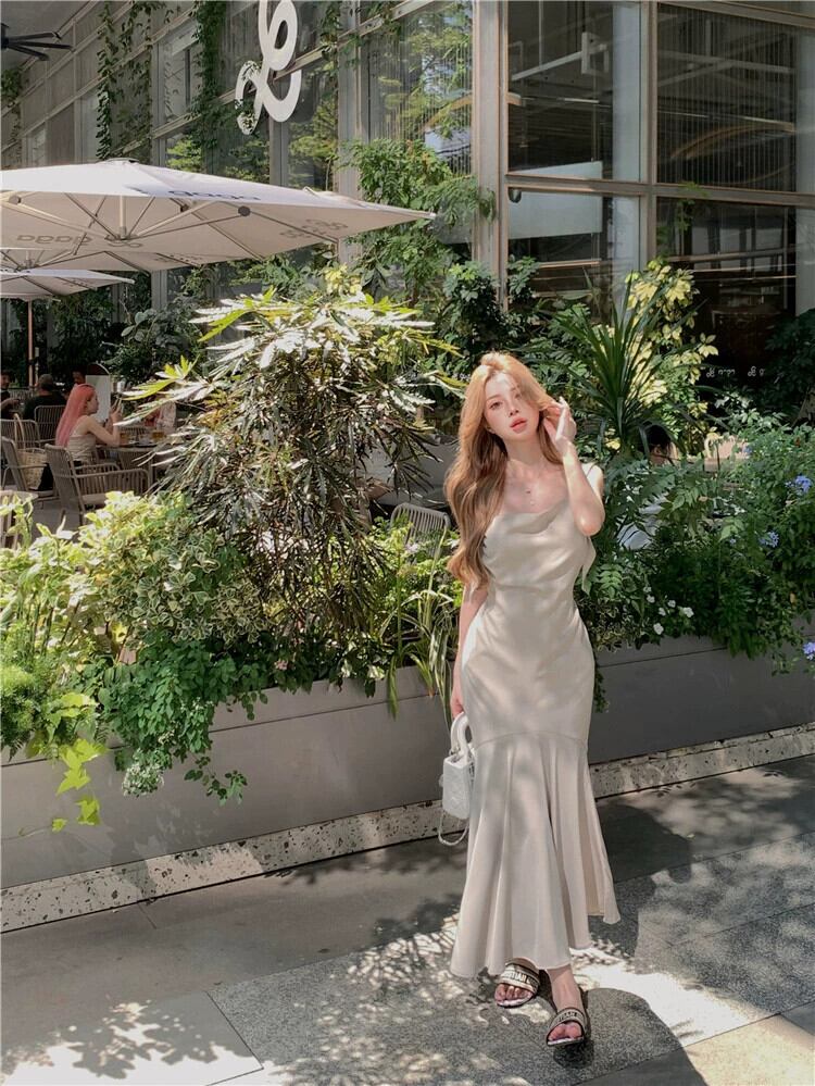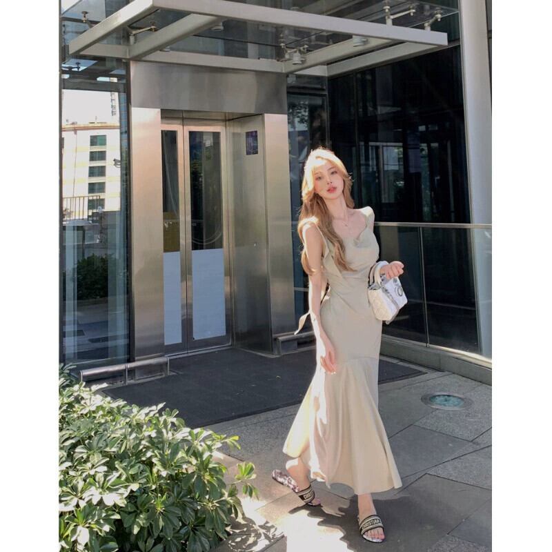セクシーなホットガールサテンスイングカラーサスペンダードレス女性の夏 2023 スタイルスリムフィットフィッシュテールスカート サマー 夏物 0921994591589215