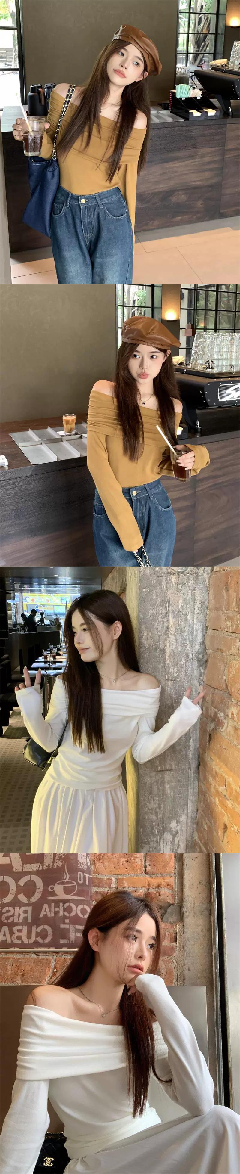 ホットスリムワンショルダーオフショルダーTシャツ女性の2023年初秋の新しい気質スリム長袖日焼け止めブラウストップ ロング オータム 秋物 0921966648596178