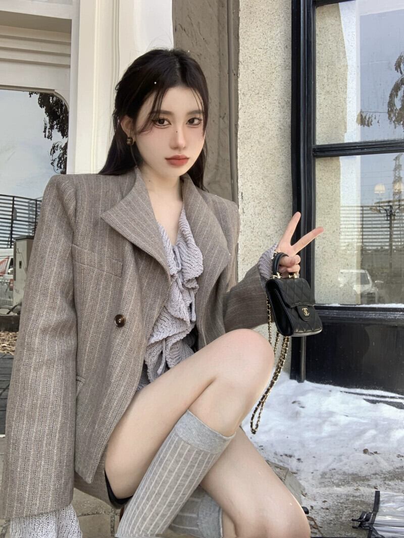 フレンチスタイルのファッションスーツの女性の夏 2023 新しいキルティングジャケットトップセータースカート 3 点セット サマー 夏物 092195189698577
