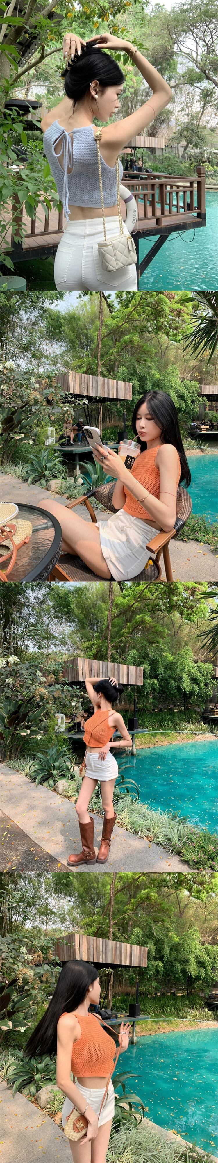 ホットニットキャミソール女性の夏のノースリーブインナーデザイン中空レースセクシーなショートトップ外で着用 サマー 夏物 092199154481251