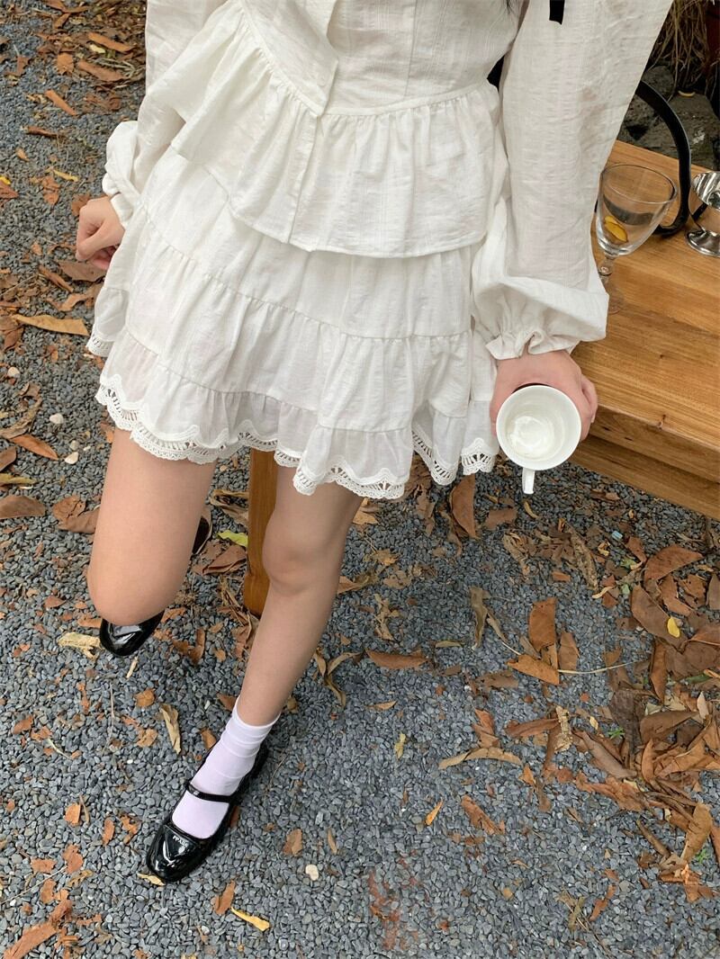 フランスの気質スーツの女性のレトロなフリル白シャツ 2023 秋の新しいスリムスカート 2 点セット ホワイト オータム 秋物 0921934365369585