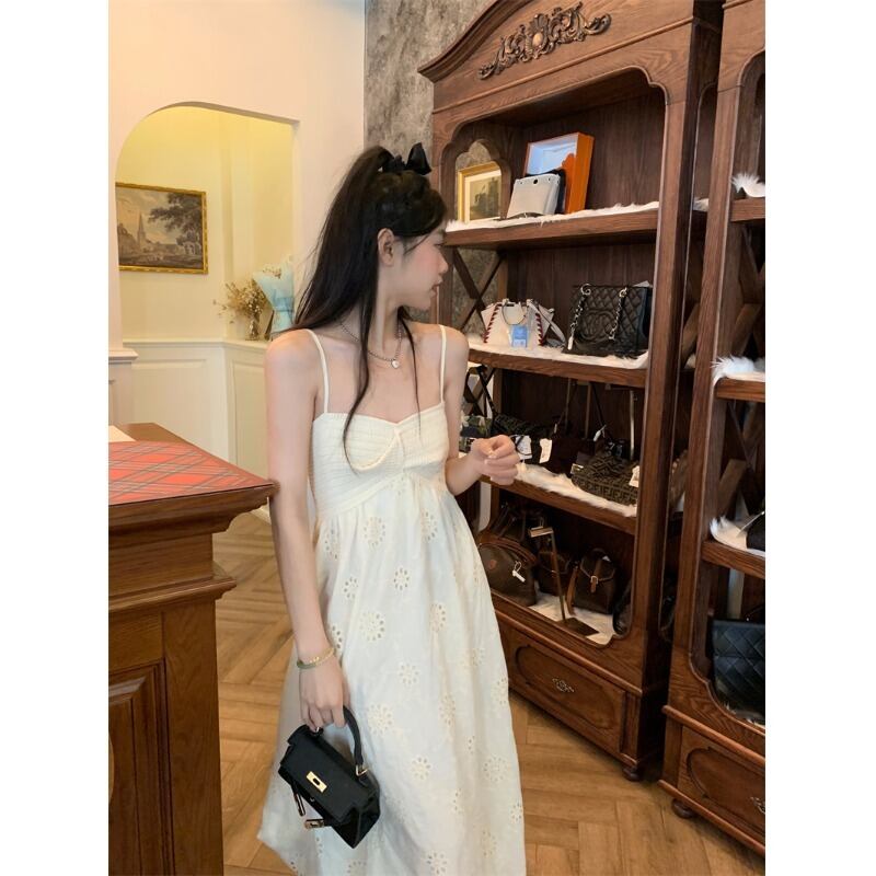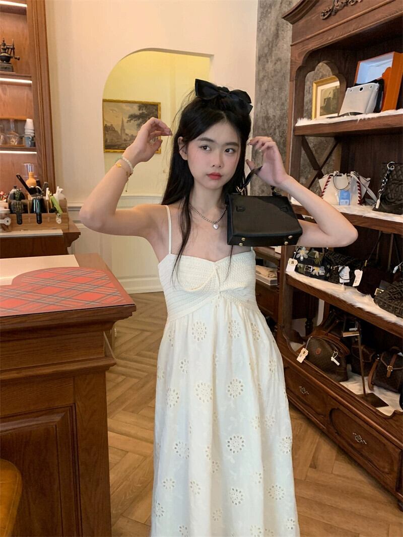 穏やかなスタイルの重工業刺繍中空サスペンダードレス女性の夏の 2023 新しいミッドレングスリゾートスタイルニットスカート レッド サマー 夏物 0921982736363310