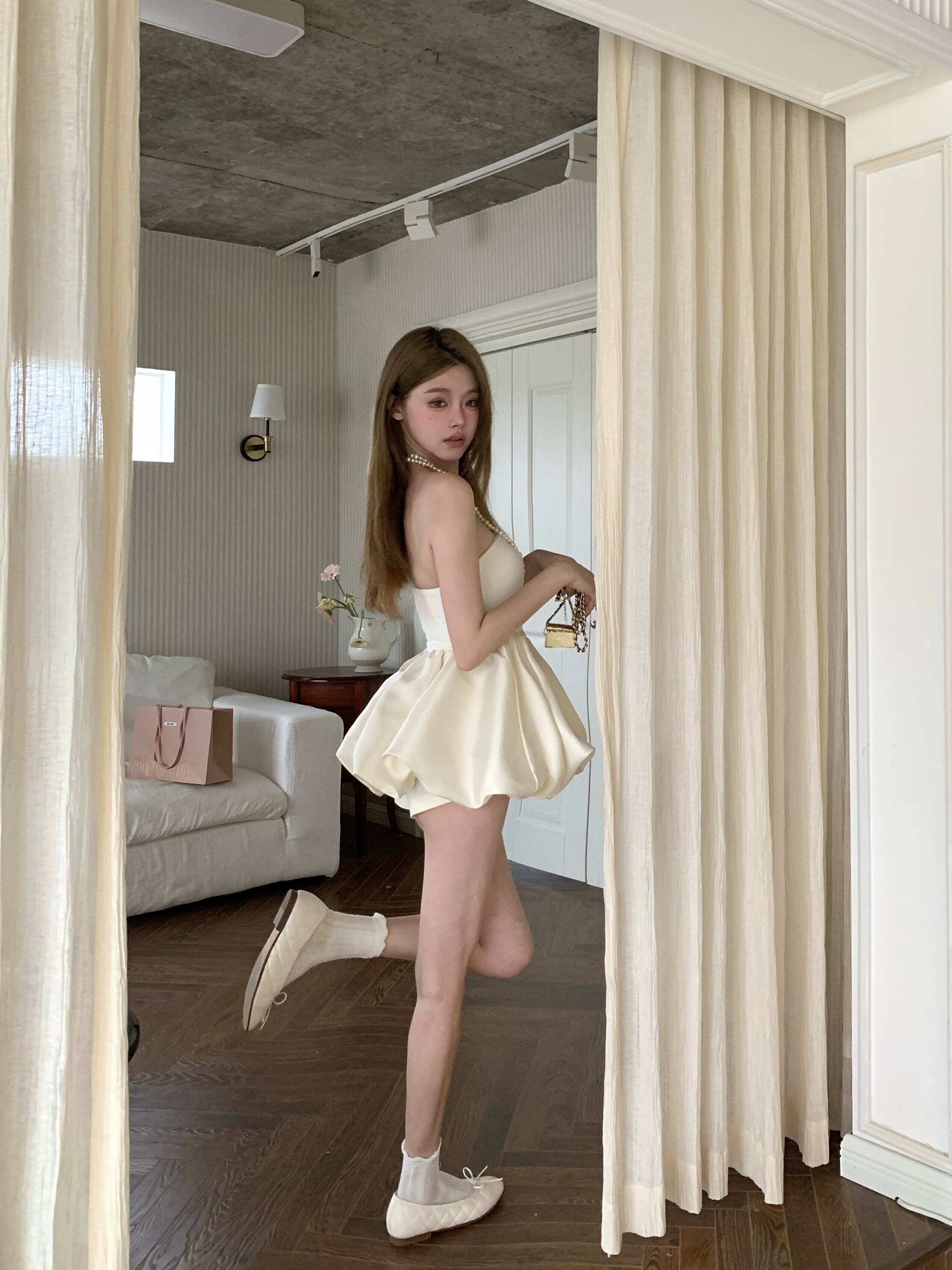甘いネクタイワンショルダーチューブトップドレス女性の夏の純粋な欲望スカート気質ノースリーブウエストセクシーなふくらんスカート 大人ガーリー スウィート キュート カジュアル サマー 夏物 ピュア 0921947885860098