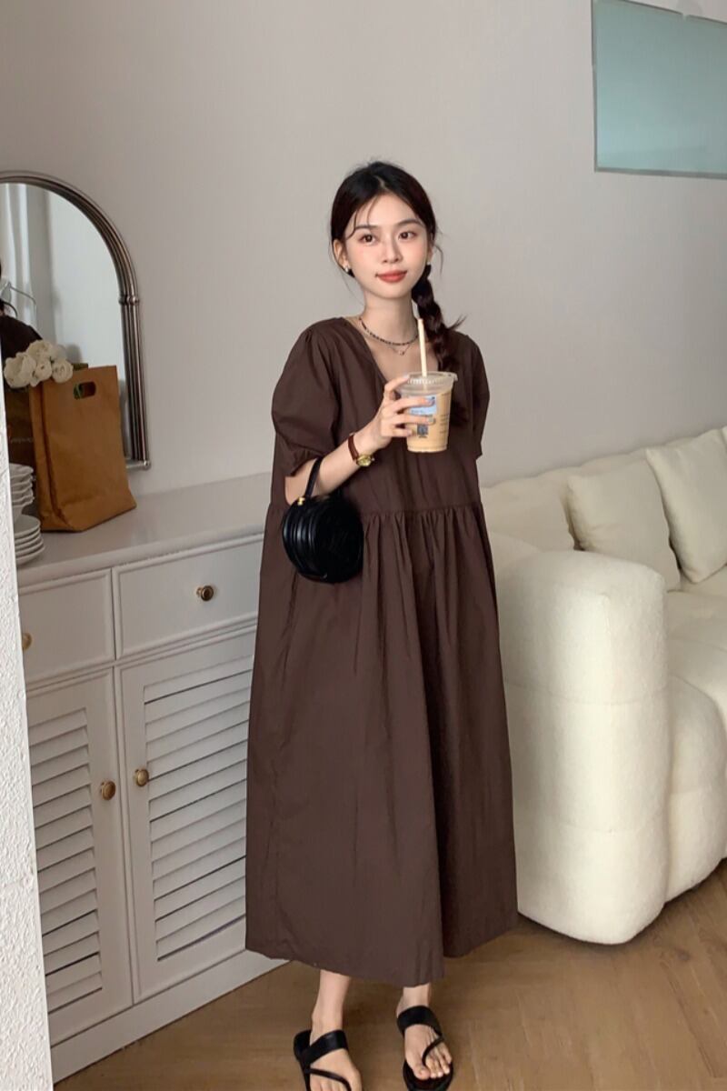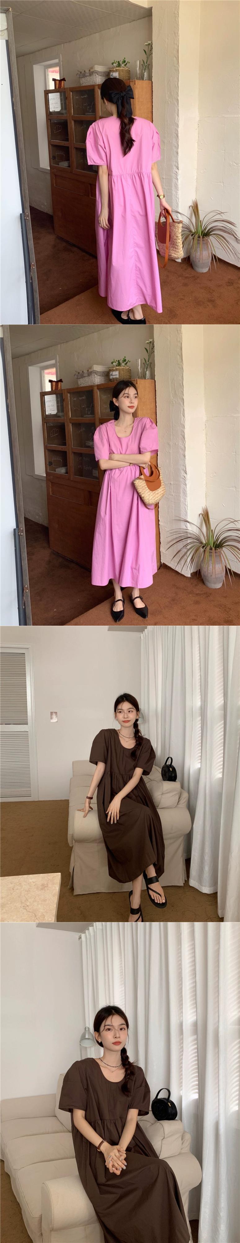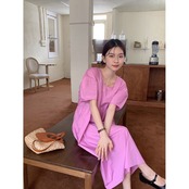 レトロな無地の多彩なドレスの女性の夏 2023 新しいスタイルミッドレングスファッションスリムパフスリーブスカート サマー 夏物 ソリッドカラー 0921926059645657