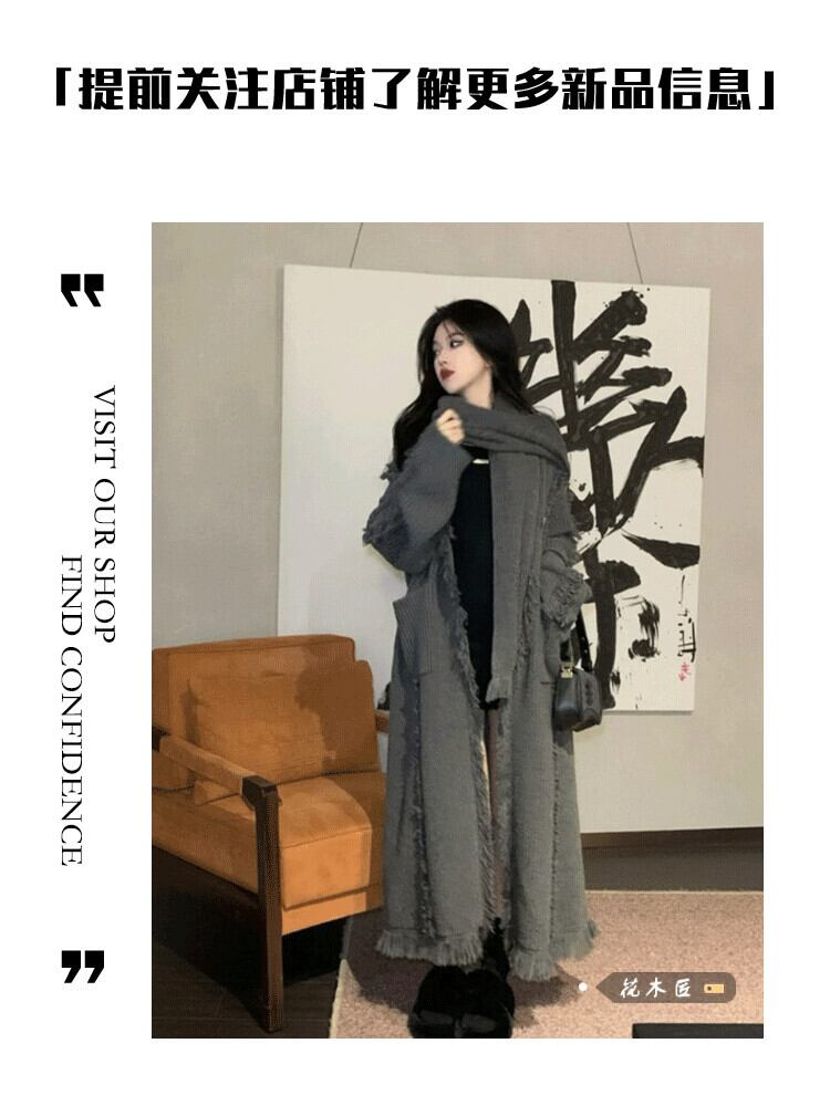 怠惰なスタイルのテルデザイン長袖セーターカーディガン女性秋 2023 新しいロングルーズスリムニットジャケット オータム 秋物 0921980179990793