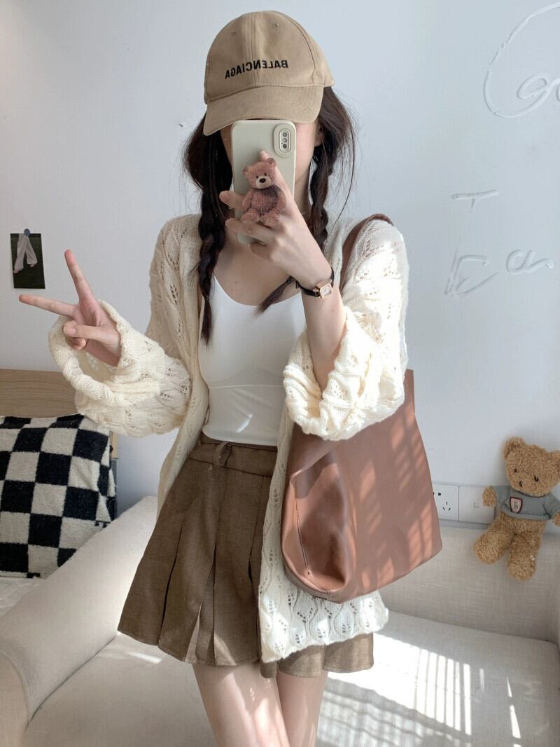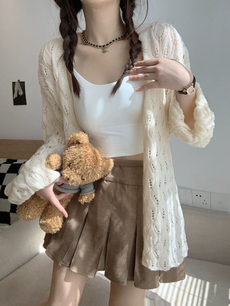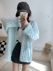 シックなかぎ針編み中空長袖ニットカーディガン女性秋 2023 新しいスタイルルーズアウターミッドレングストップ ロング オータム 秋物 0921948559005648