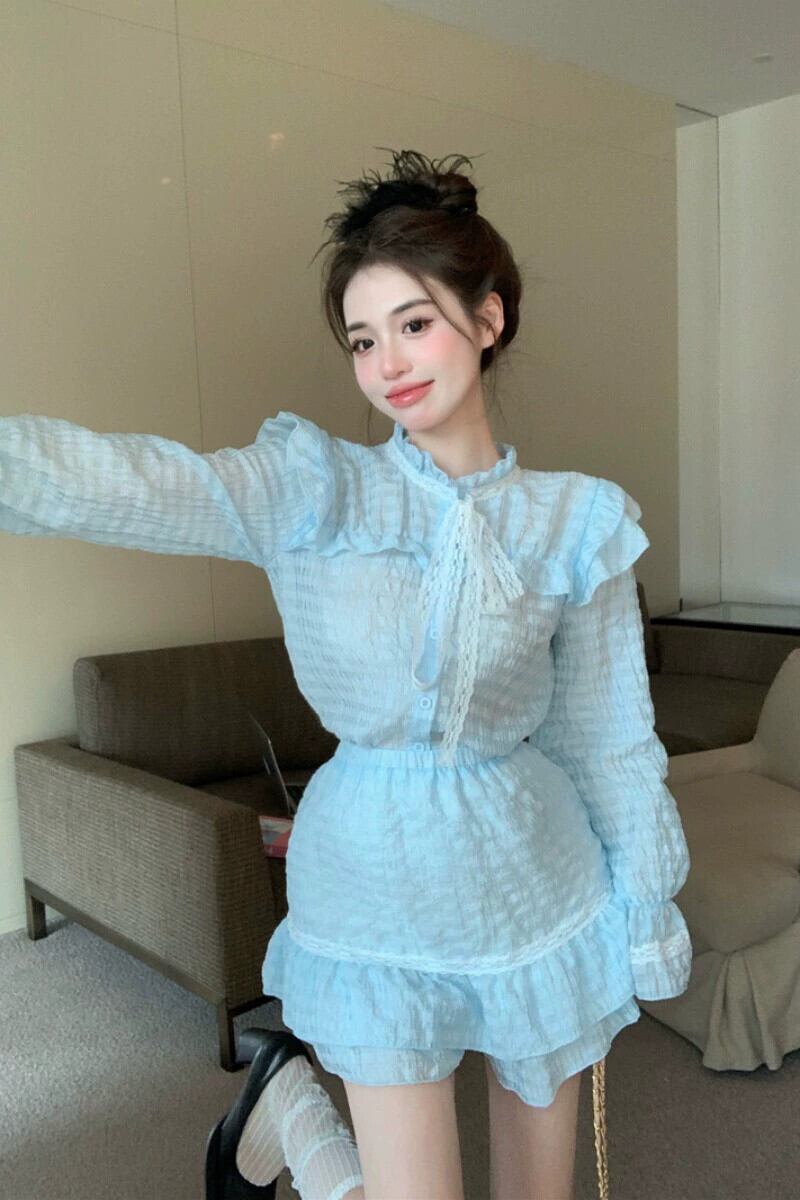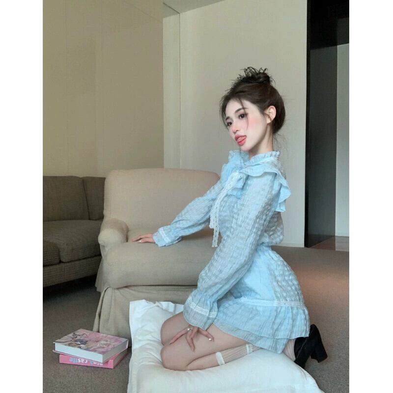 甘いスタイル年齢を減らすスーツスカートレディース 2023 秋の新作レース長袖シャツ痩身芽スカート 2 点セット ロング 大人ガーリー スウィート キュート カジュアル オータム 秋物 0921948384650251