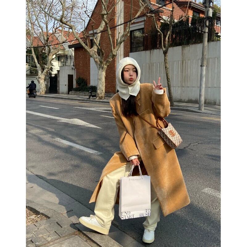 スタイル怠惰なスタイル肥厚ウールコート女性の秋と冬シックなゆったりとした高品質の膝丈ウールコート オータム 秋物 ウィンター 冬物 0921932789579180