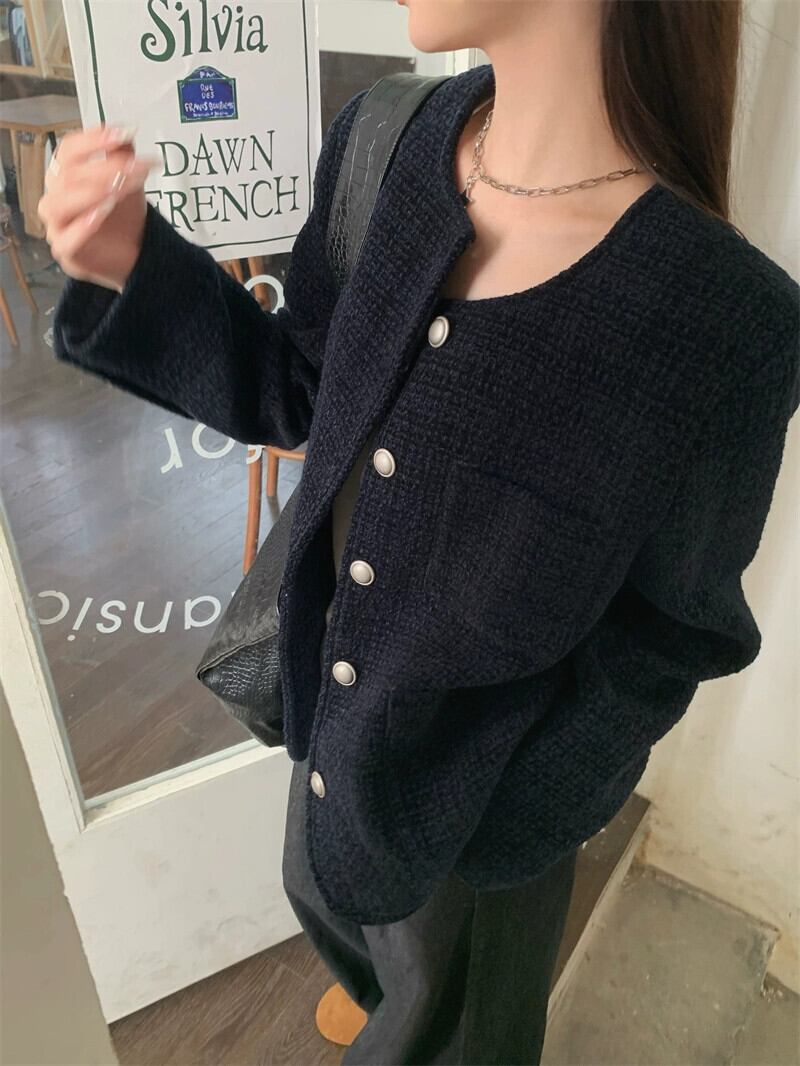 インスタイル長袖ラウンドネックウールコート女性秋 2023 新しい気質緩い編組小さな香りのトップ ロング オータム 秋物 0921982592916877