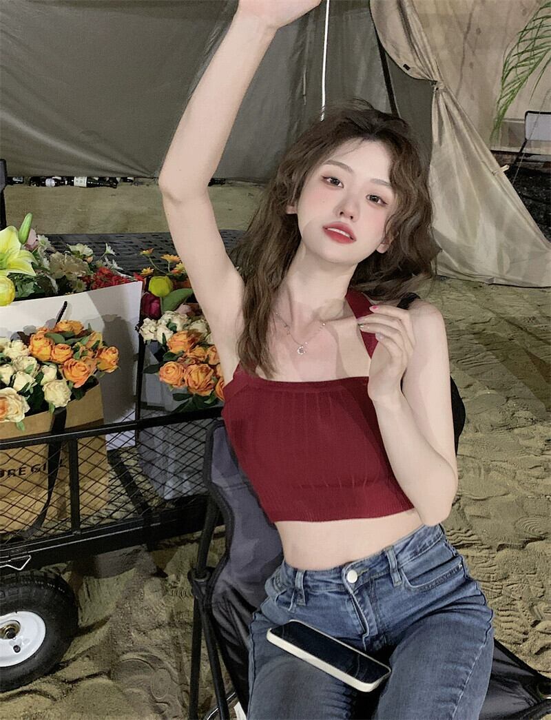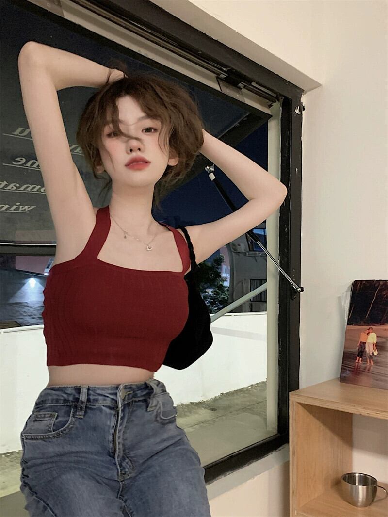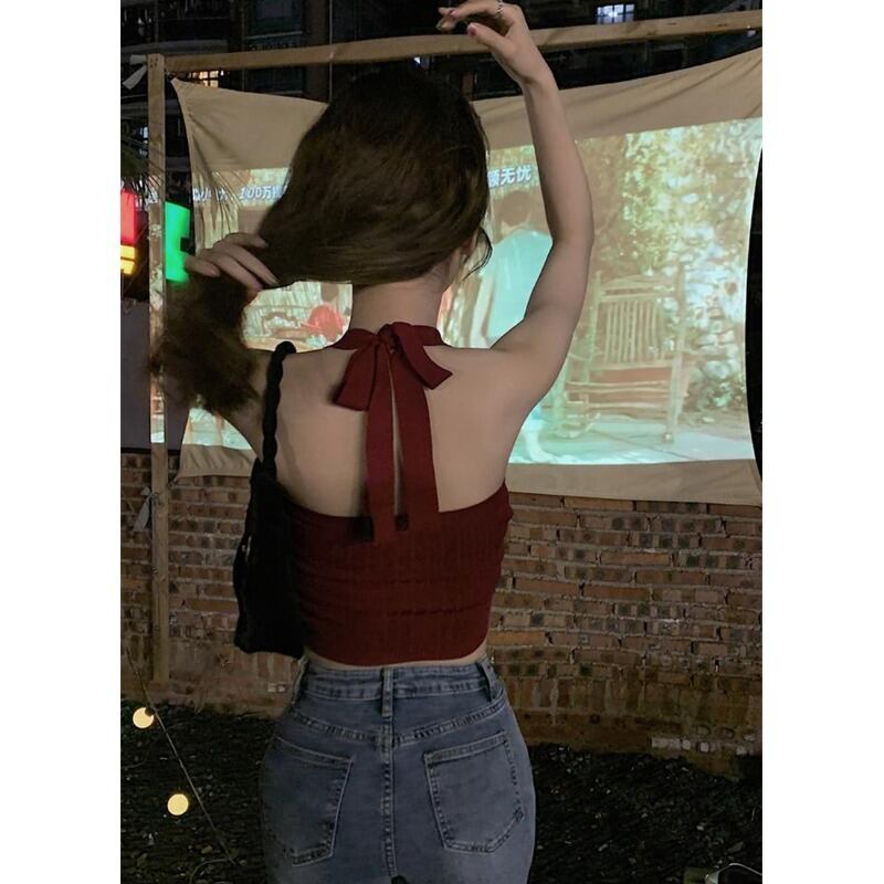 ホットストラップホルターネックキャミソール女性の夏の 2023 新しいセクシーな背中の開いたタイトなショートトップアウターウェア サマー 夏物 092193994585510