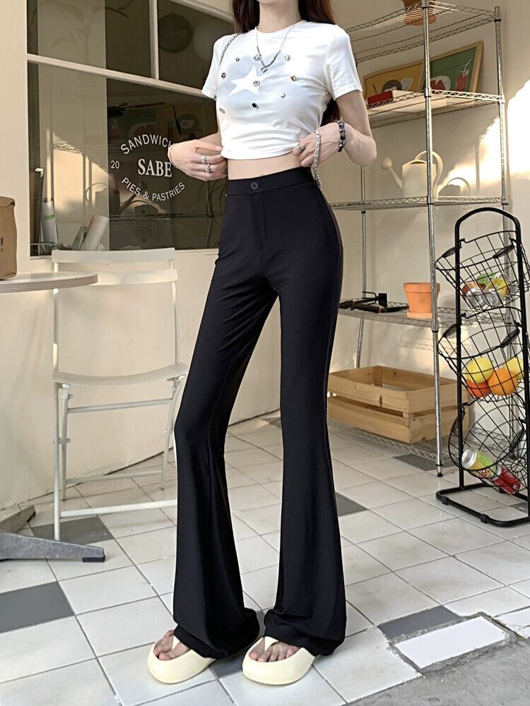 黒のハイウエストスリムフィットドレープカジュアルパンツ女性の夏 2023 新しいスタイル多用途気質わずかにフレア床長ズボン レッド ブラック サマー 夏物 0921939670463720
