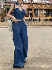 Sweet Cool Hot Girl チューブトップスーツ レディース 夏 2023 ルーズ スリム ワイドレッグ パンツ パンツ 2 点セット 大人ガーリー スウィート キュート カジュアル サマー 夏物 ワイドパンツ 0921979246911759
