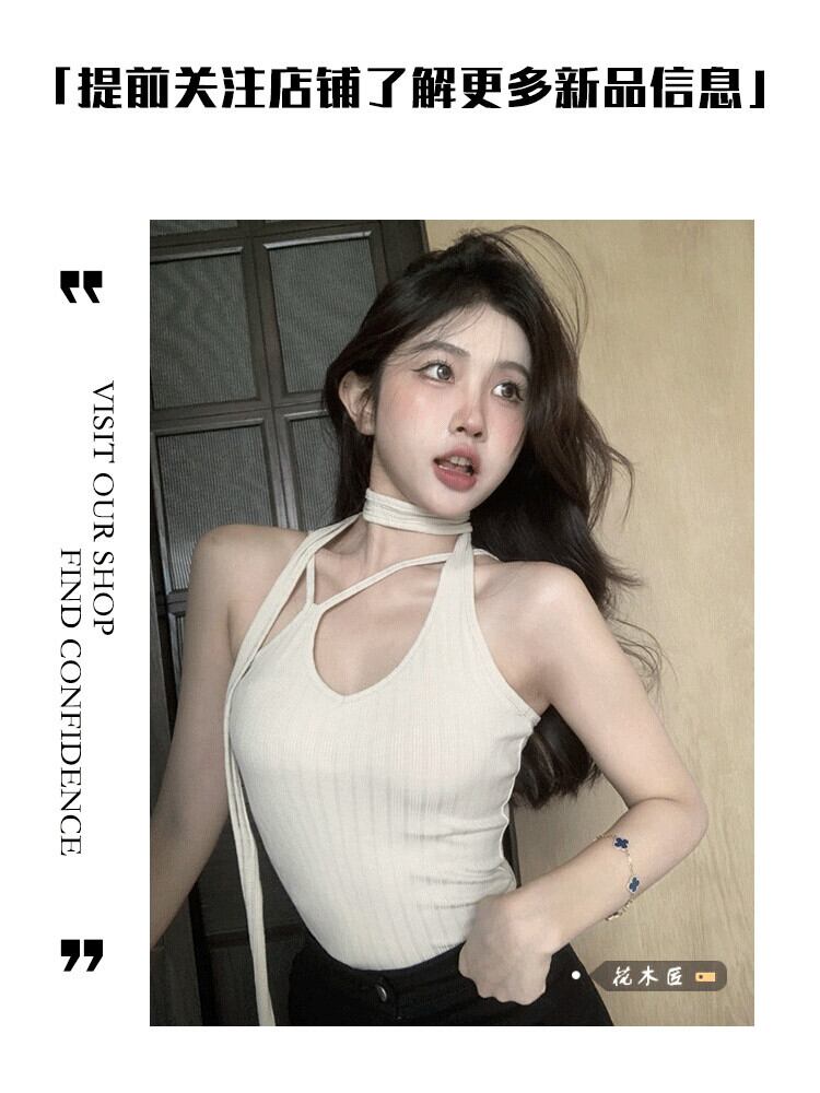 慎重な機械中空デザインホルタートップ女性の夏 2023 新しい純粋な欲望ネクタイスタイルショートホルタートップ サマー 夏物 ピュア 0921911564876685