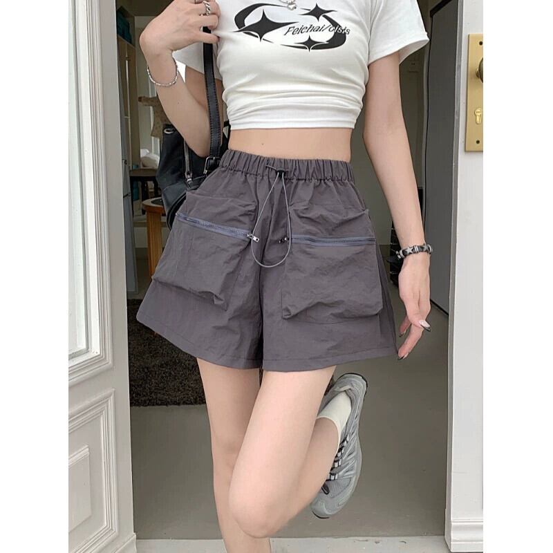 アメリカン アーミー グリーン レトロ カーゴ ショーツ レディース 夏 ダブルポケット ワイドレッグ ホット ガール ウエスト パンツ サマー 夏物 ブルマー ワイドパンツ 0921957649645937