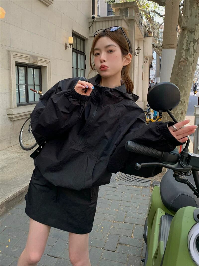 スポーツとレジャースーツの女性初秋 2023 新しいフード付き長袖日焼け止めジャケットハイウエストスリムスカート 2 点セット ロング オータム 秋物 0921970251924999