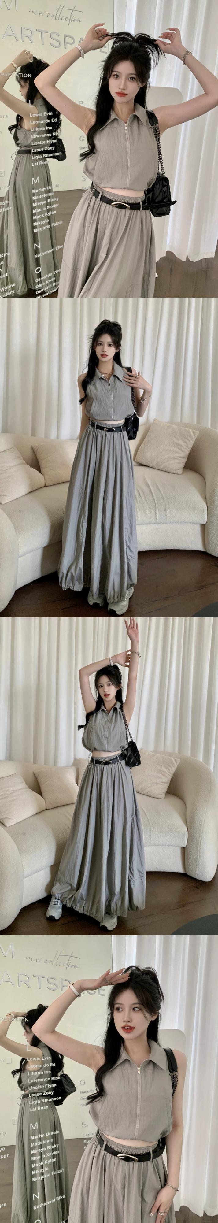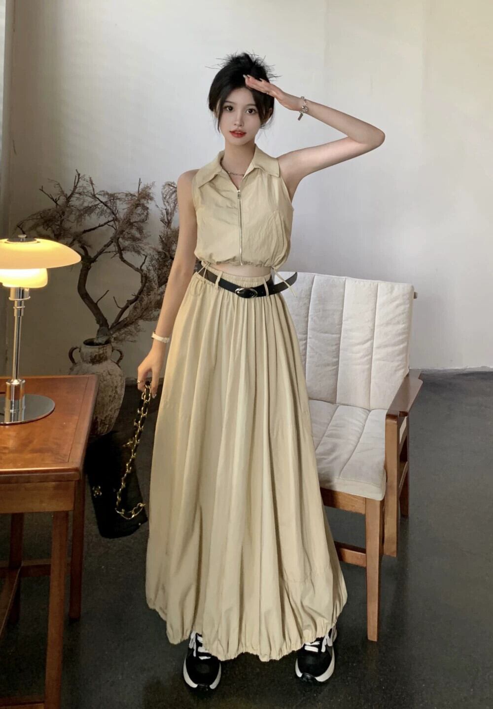 クールなスタイルのスーツの女性、デザイナーラペルトップ、夏のゆったりとした巾着ワークスカート、スカート、ロングスカート、2点セット サマー 夏物 0921933520442302