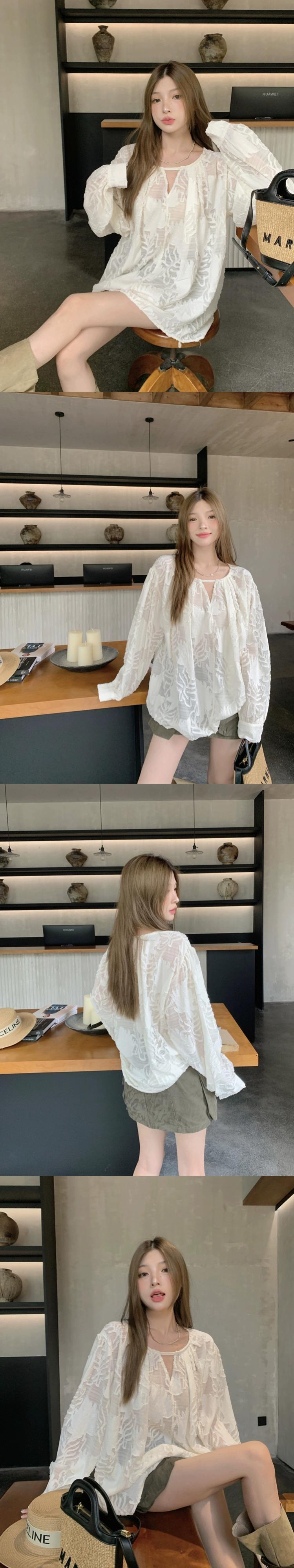 怠惰なデザイン中空長袖シフォンシャツ女性の夏 2023 新しいスタイル優しい風ミッドレングスルーズトップ ロング サマー 夏物 092196728763619