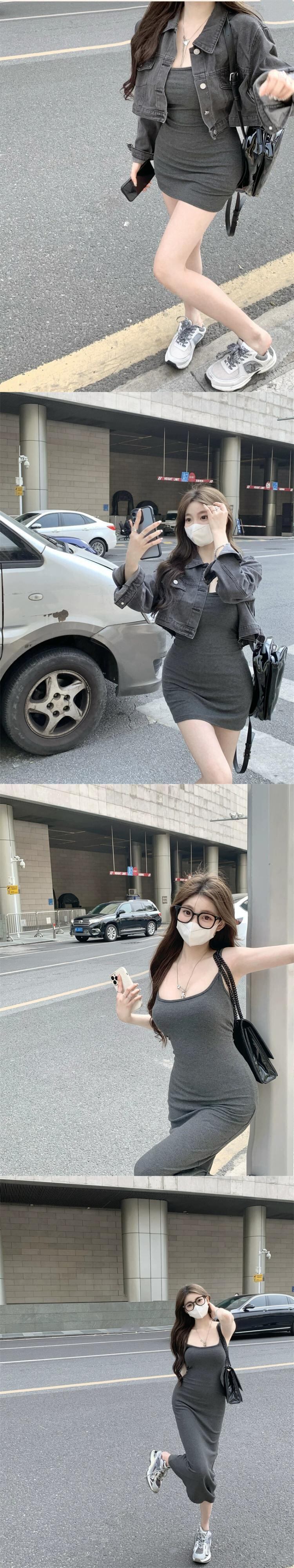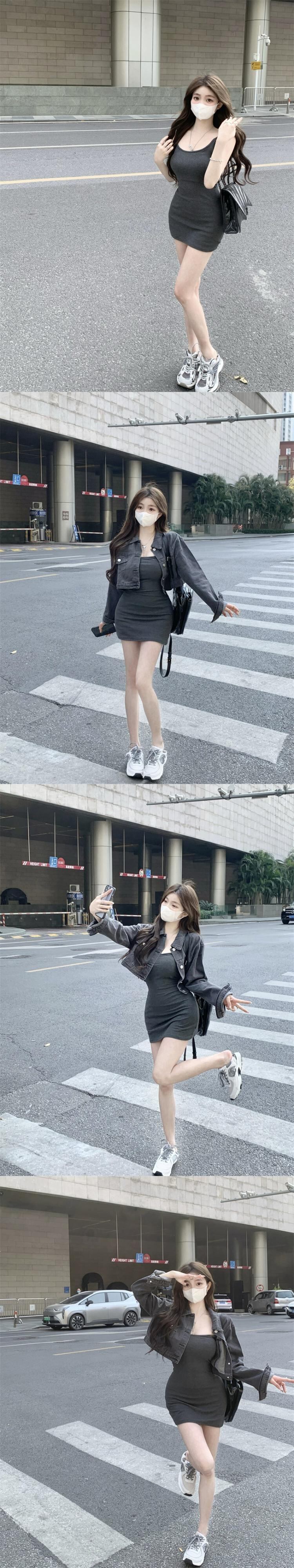黒とグレーの純粋な欲望セクシーなサスペンダードレスの女性の夏 2023 新しいボトミングウエスト痩身スリムヒップスカート ブラック サマー 夏物 ピュア 0921933753406188