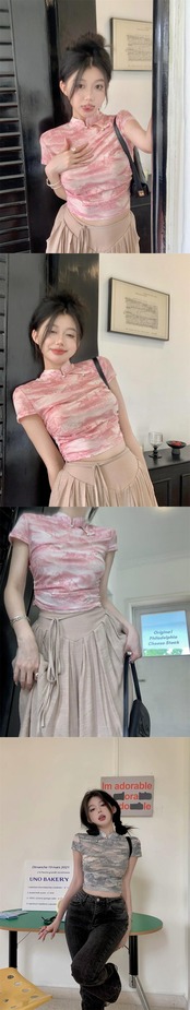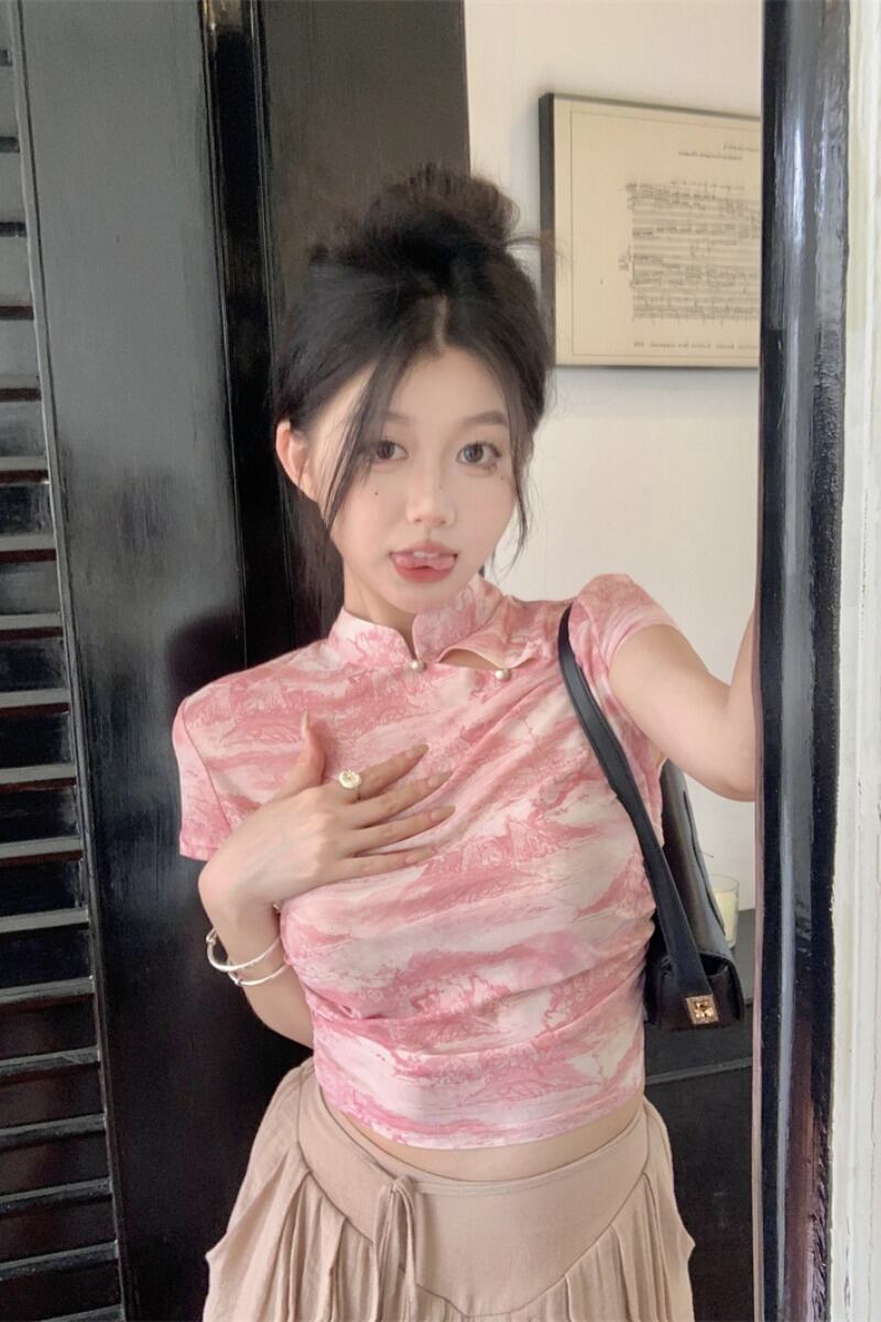 中国風のチャイナドレス改善半袖 Tシャツ女性の夏の 2023 新しいデザインショートスリムスリムトップトレンディな サマー 夏物 092197091731562