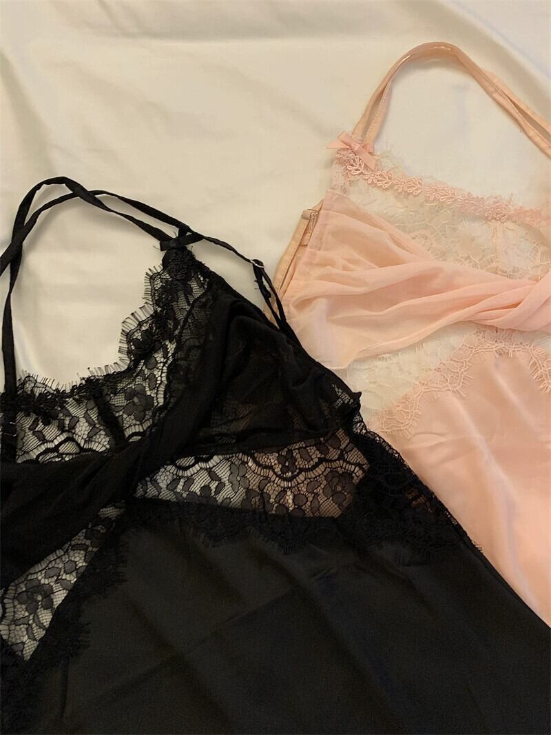 セクシーなサスペンダー背中の開いたクロスネグリジェ女性の夏 2023 新しい純粋な欲望レースの弓 A ラインスカート リボン サマー 夏物 Aライン ピュア 0921923685291275