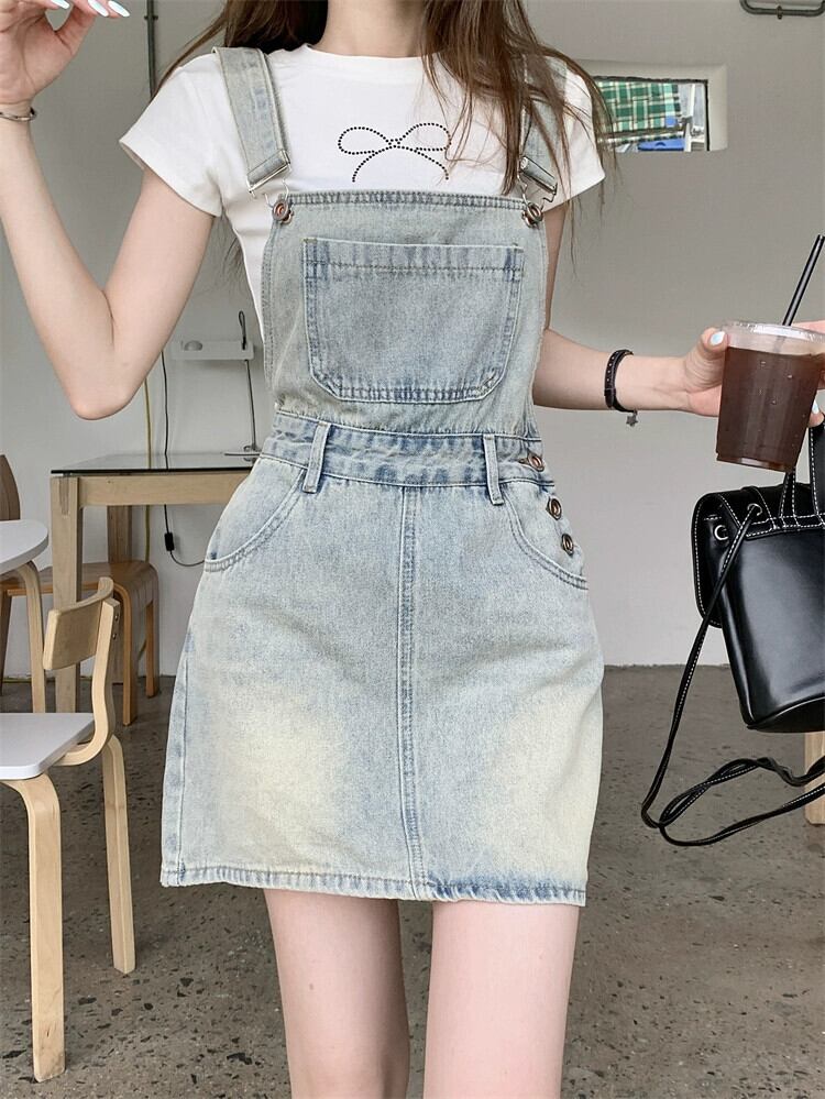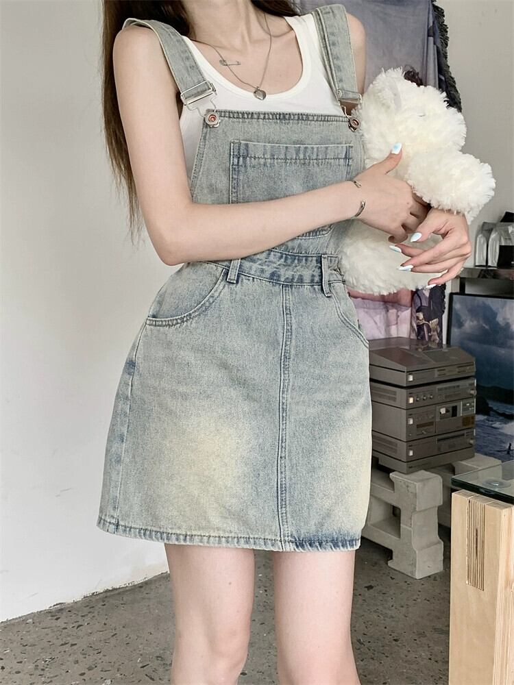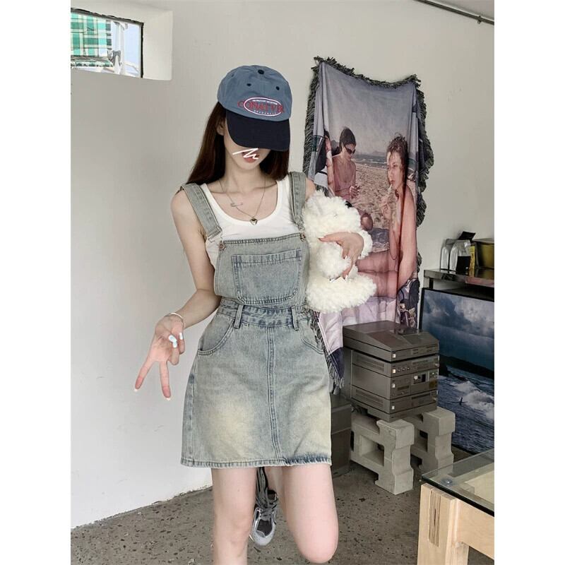 レトロホットガールデニムサスペンダードレス女性夏 2023 ウエストスリム A ラインサスペンダースカート サマー 夏物 Aライン 0921992239165590