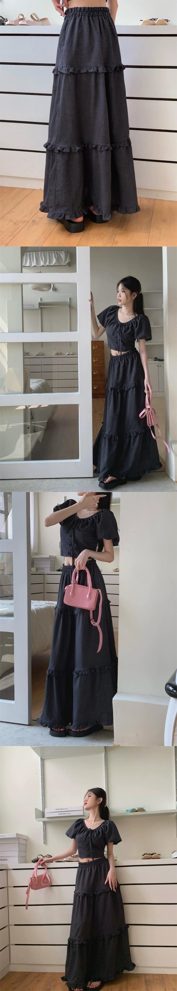色:ブラックトップ,黒スカート,ブルートップ,青いスカート