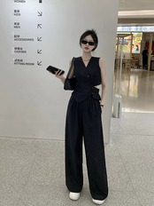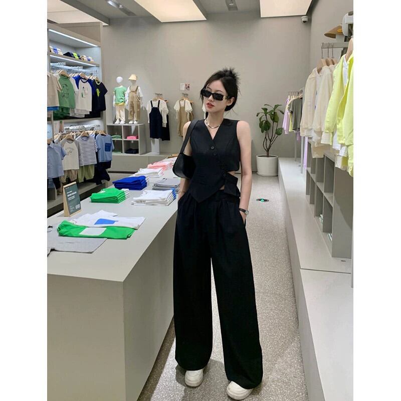気質シックなファッションスーツの女性の夏の 2023 新デザインベストトップスーツワイドレッグパンツ 2 点セット サマー 夏物 ワイドパンツ 0921965417699188