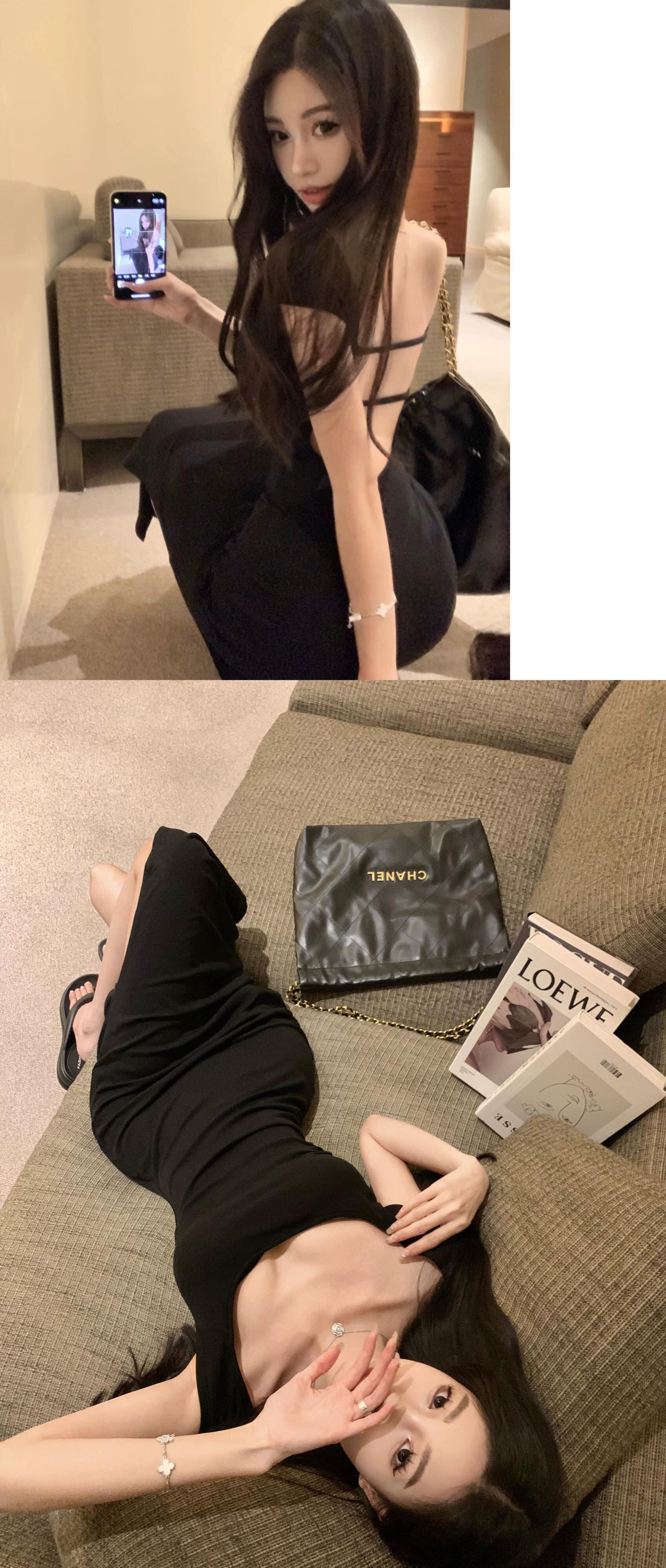 純粋な欲望スタイル背中の開いた半袖ドレスの女性の夏 2023 新しい気質スリムスリムヒップカバーロングスカート サマー 夏物 0921950144314114
