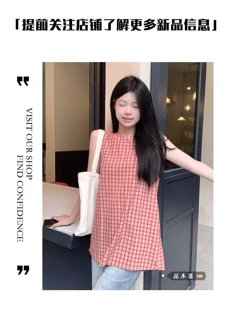 スタイル小さな年齢軽減チェック柄ノースリーブドレス女性の夏 2023 新しいルーズで多目的なスリムベストドレス サマー 夏物 0921924197436149