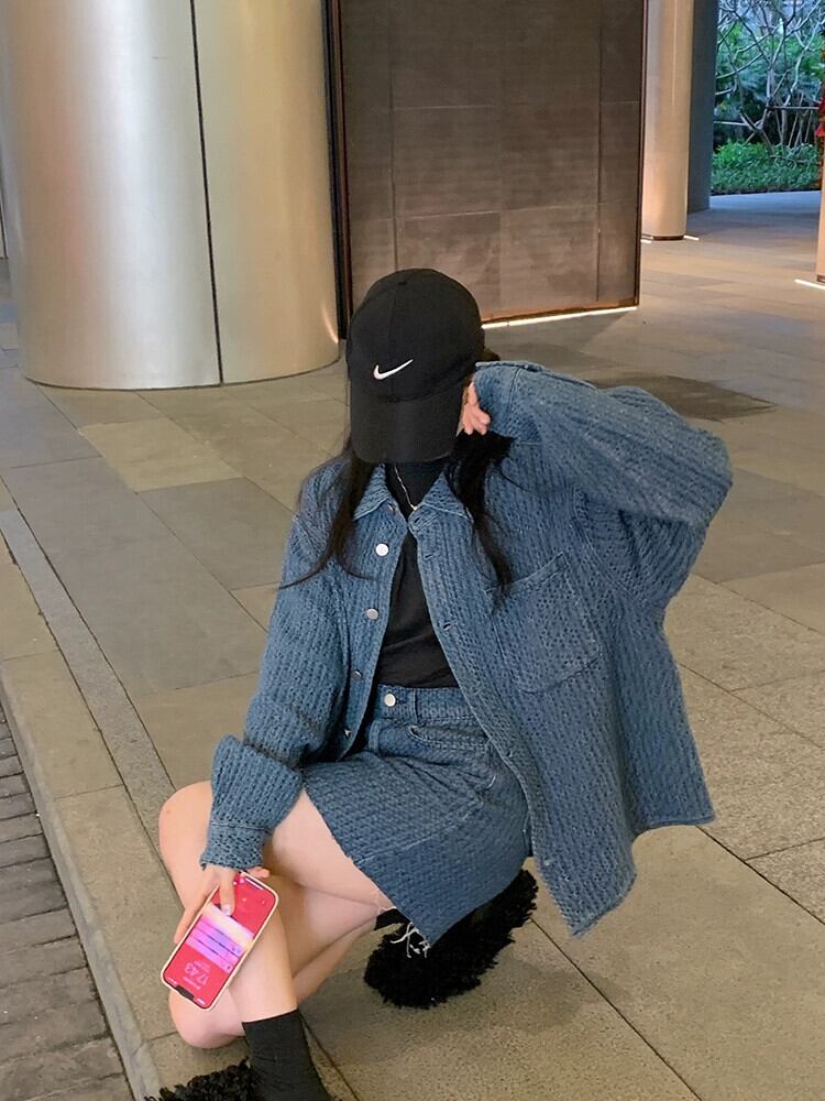 気質小さな香りのスタイルジャケットデニムスーツ女性秋 2023 新しいスリムスカートローエッジショートスカート 2 点セット オータム 秋物 0921910226705919
