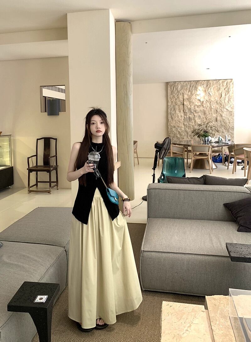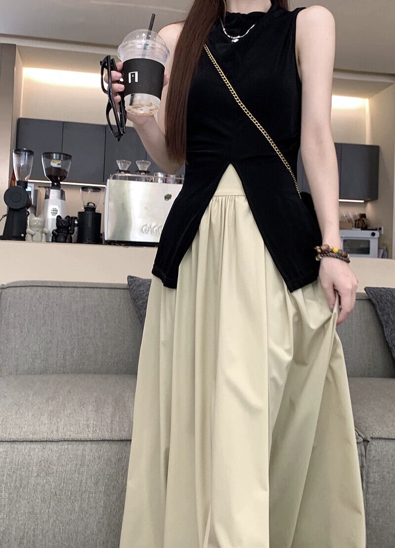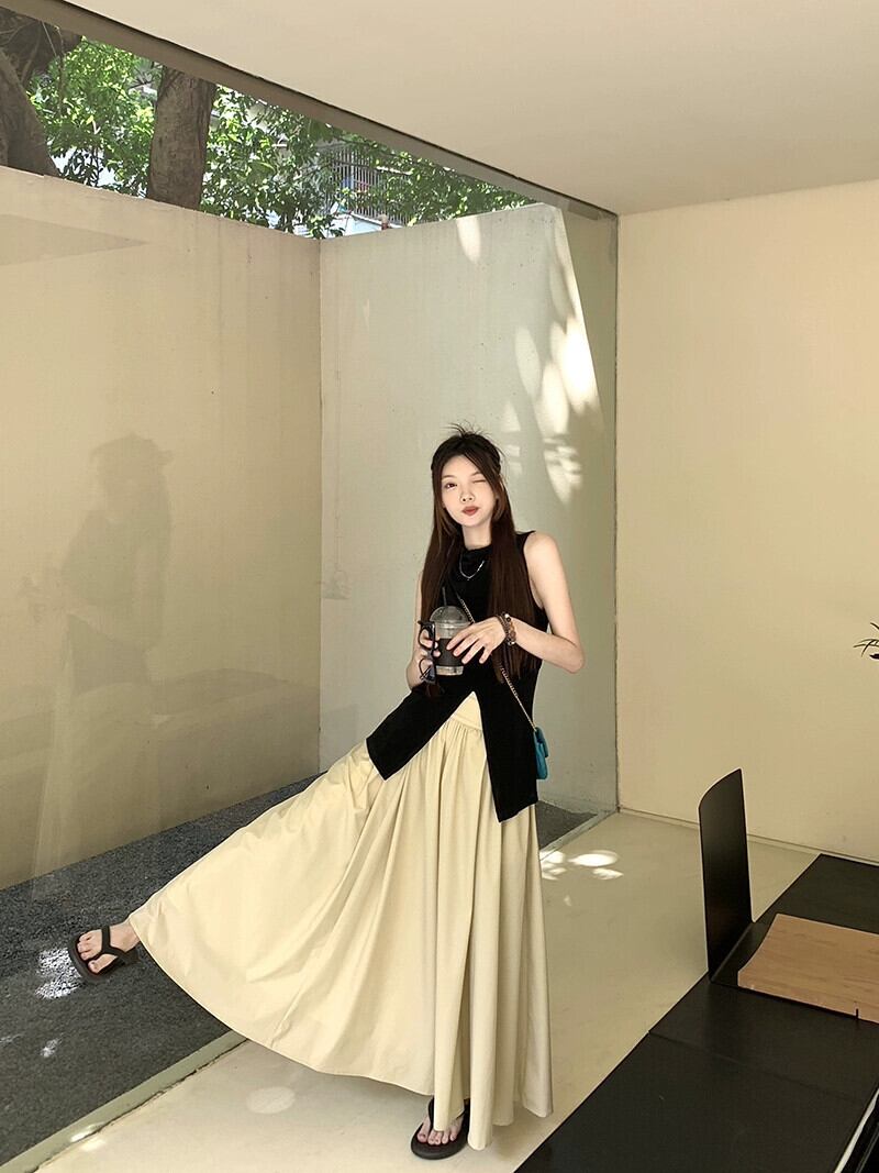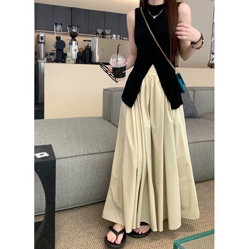 フレンチスタイルの高級スカートレディース2023秋新作ハイウエストドレープスリム万能Aラインロングスカート オータム 秋物 0921947625022598