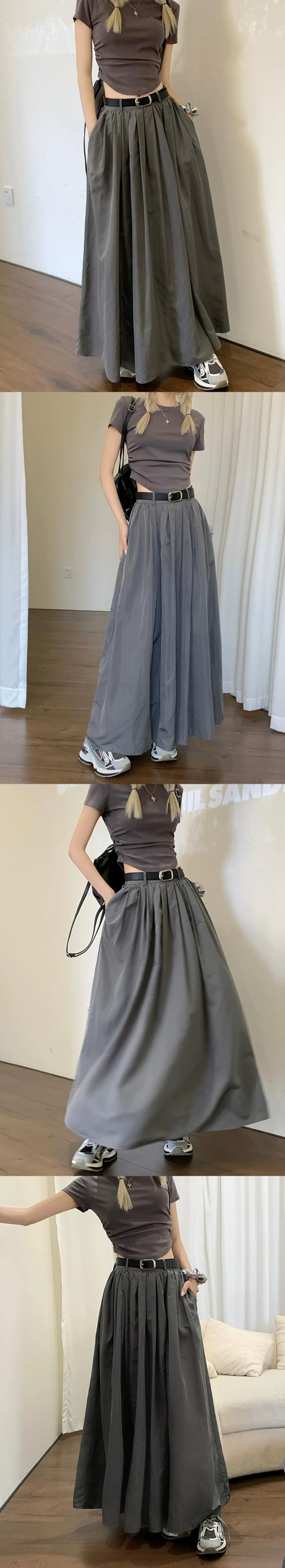 スタイルインソリッドカラーデザインスカート女性秋 2023 新しいスタイルドレープハイウエスト多用途 A ラインプリーツロングスカート ハイウェスト オータム 秋物 Aライン 092196327164646